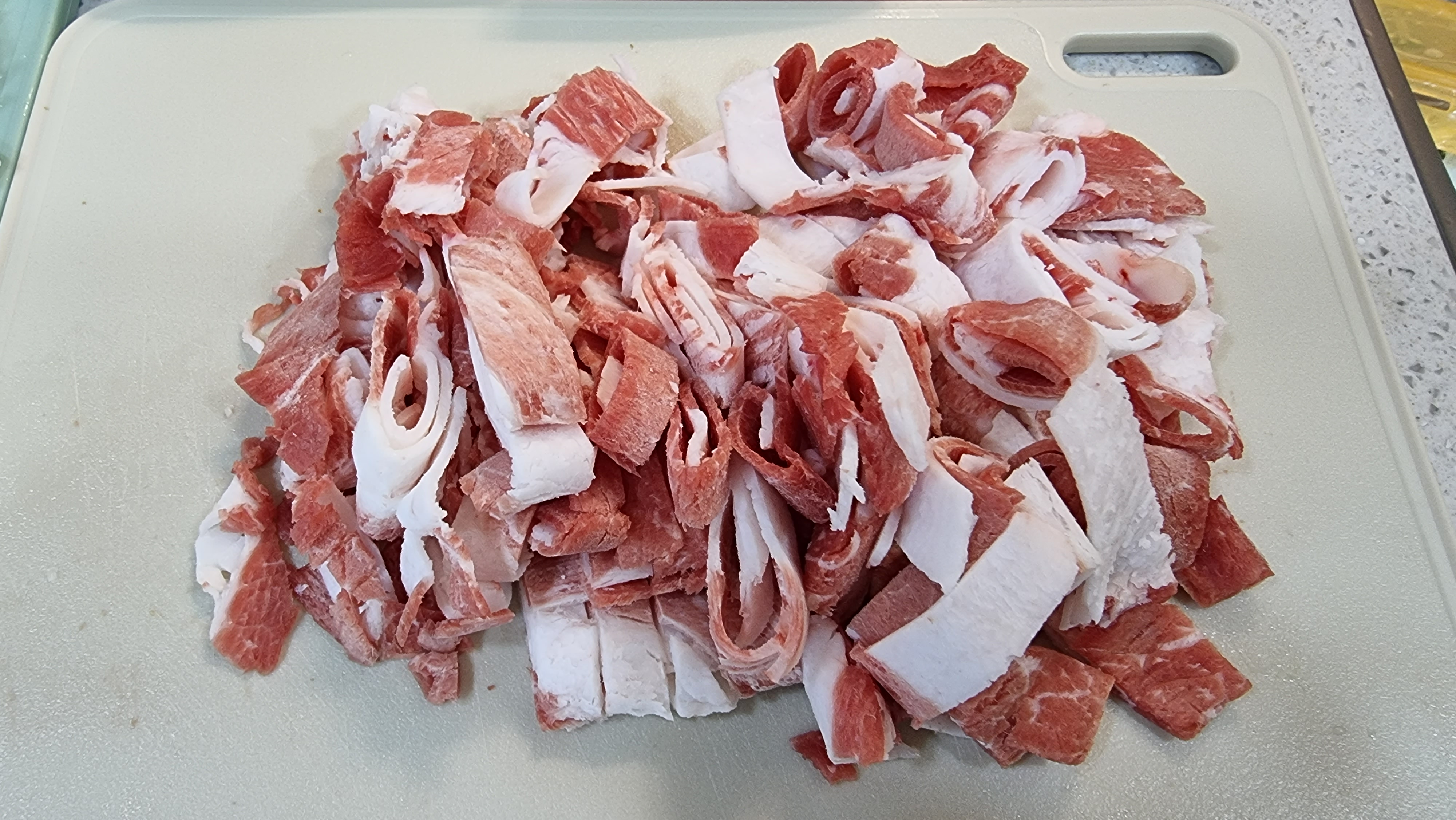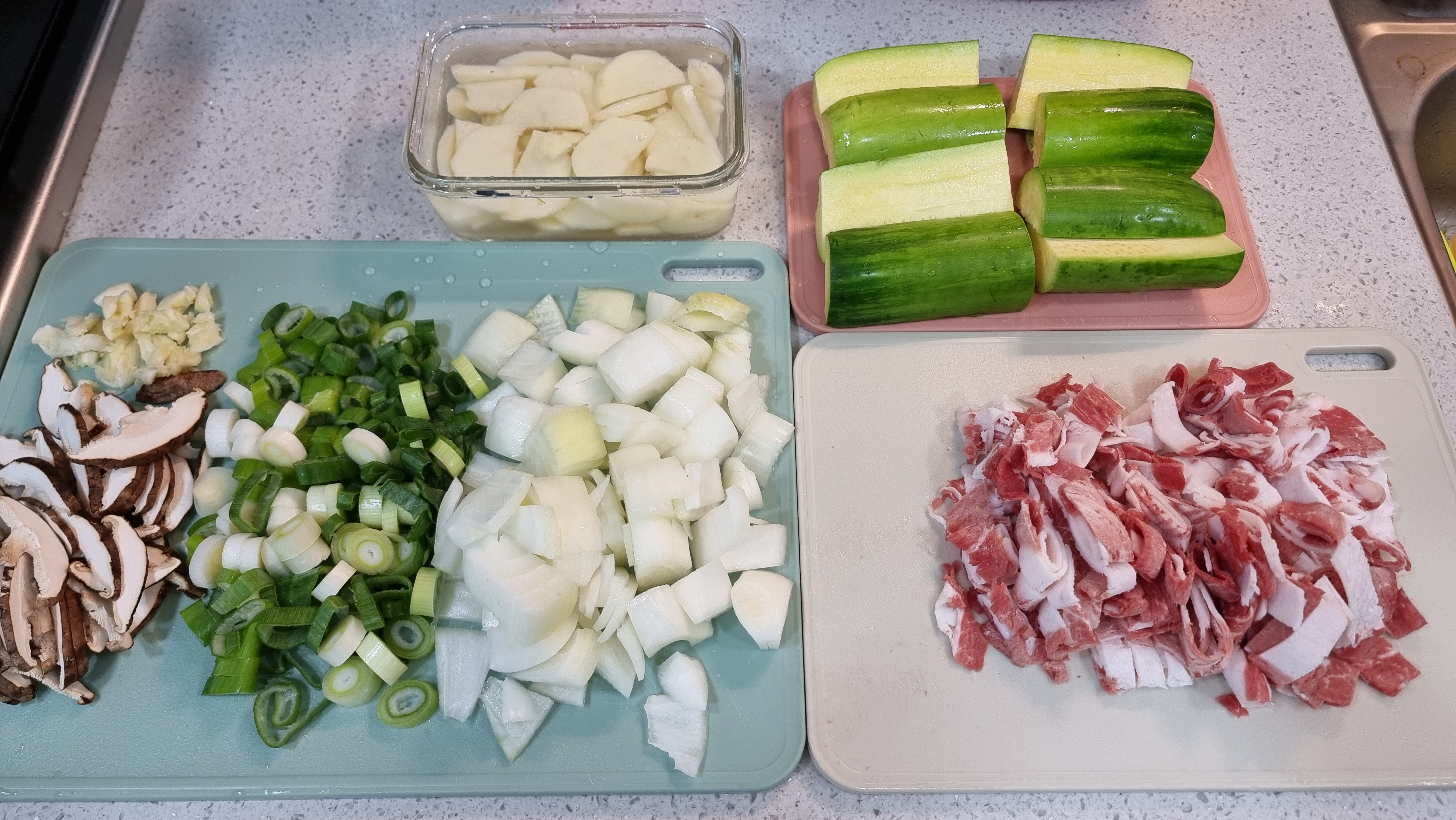 일단 준비한 채소들과 차돌박이를 손질해 줍니다.
