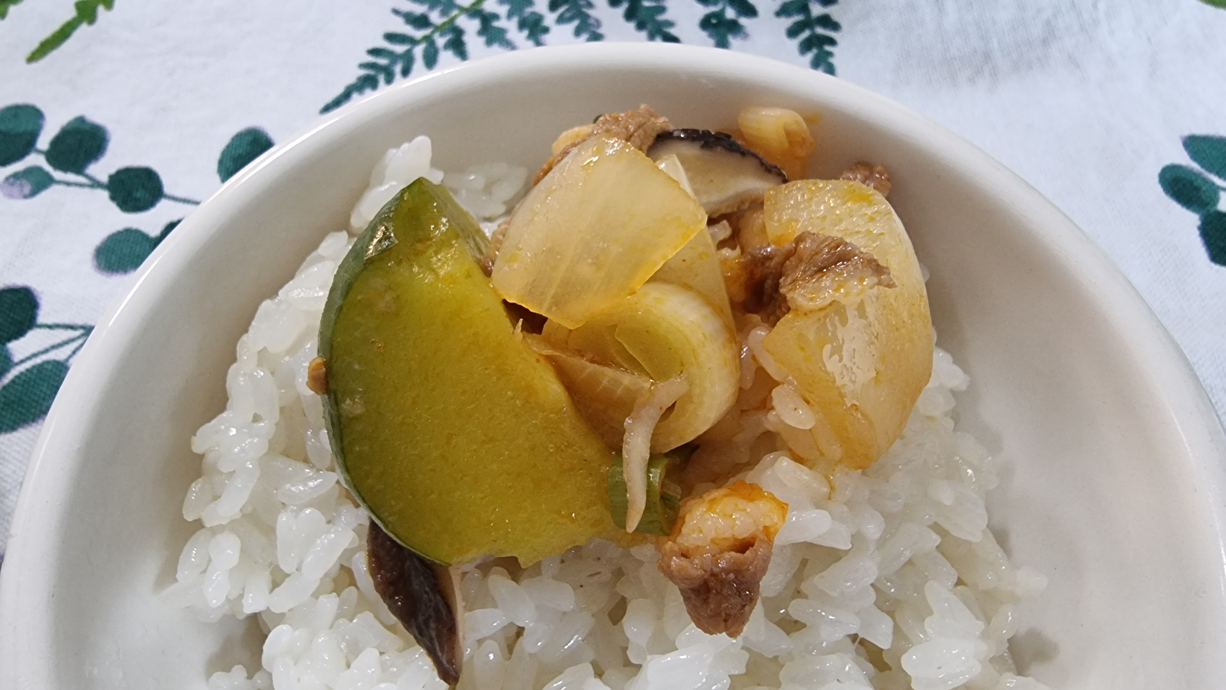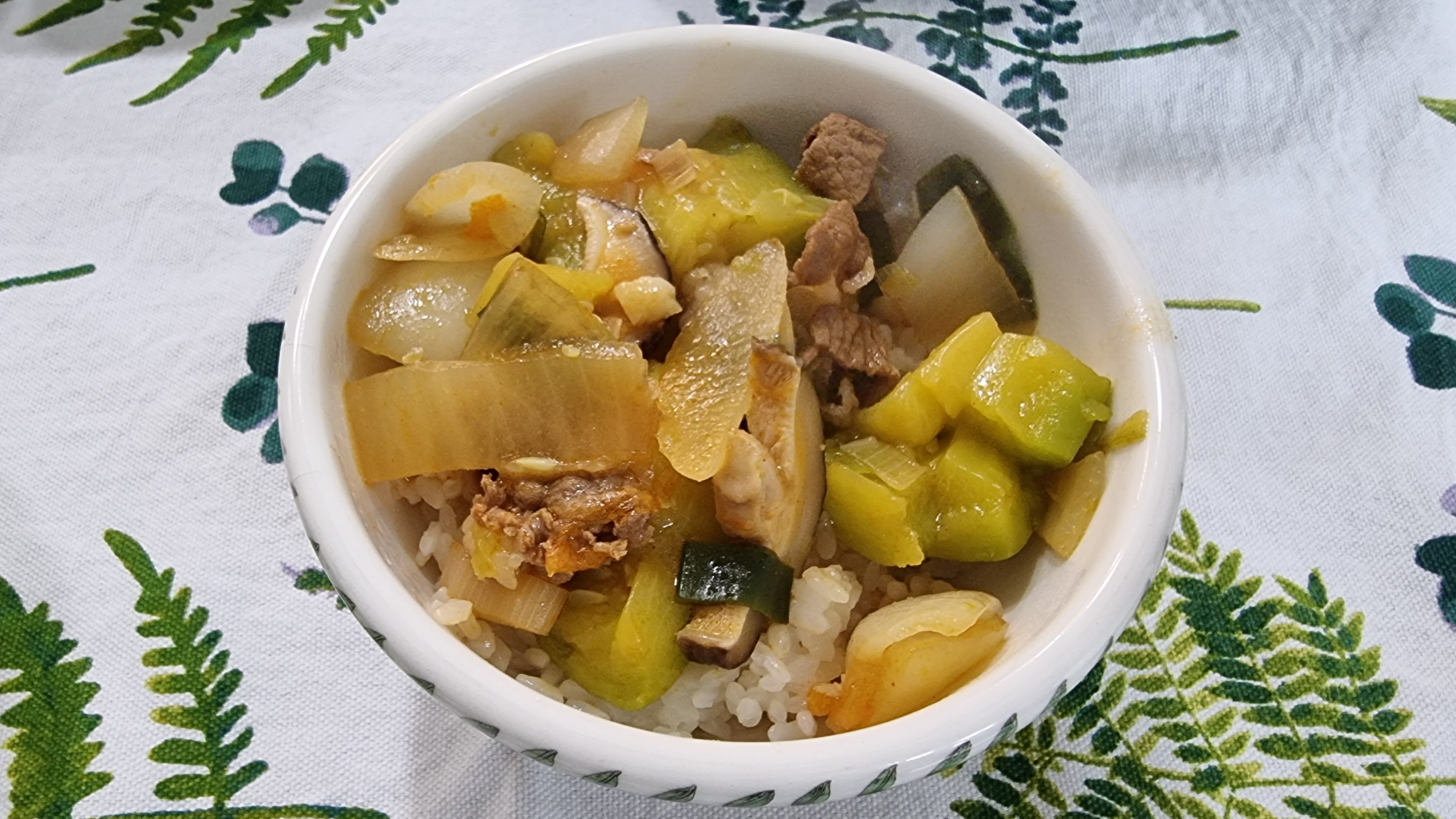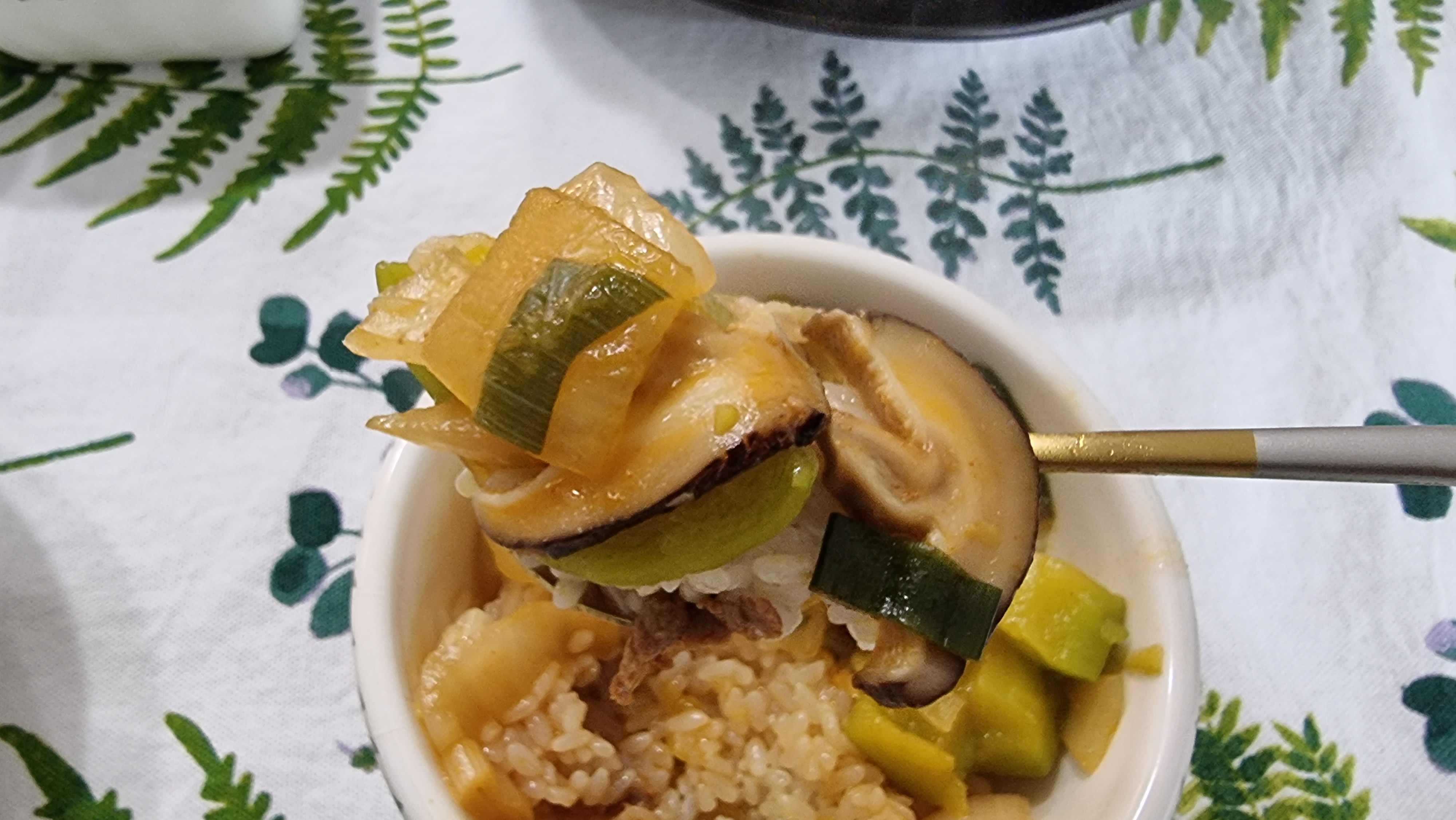 애호박을 숟가락으로 스겅..잘라서 밥에 된장찌개와 올려주고 밥과 함께 입으로..