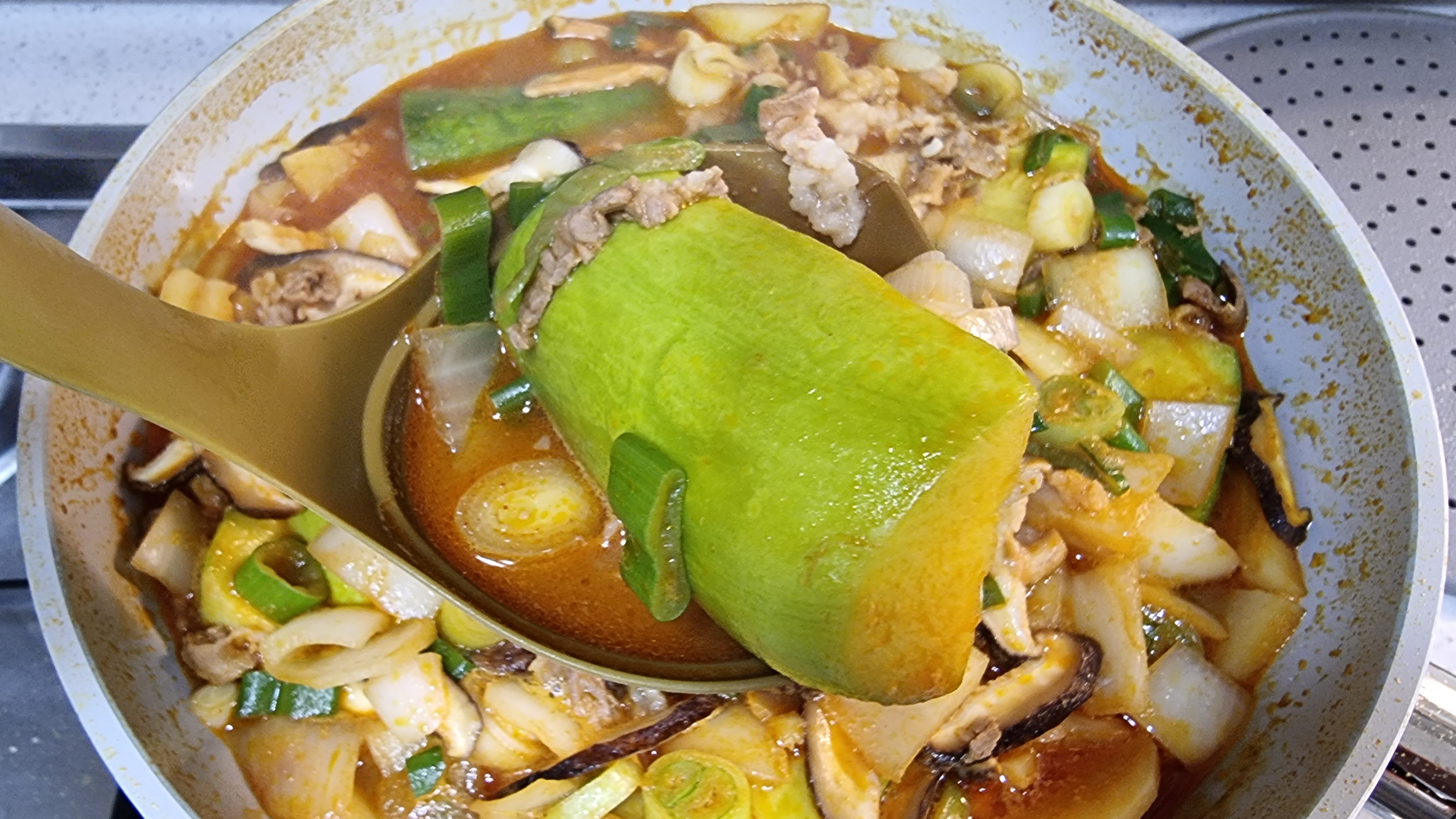 이 상태로 통애호박이 푹 익을때까지 끌여주면 됩니다.
