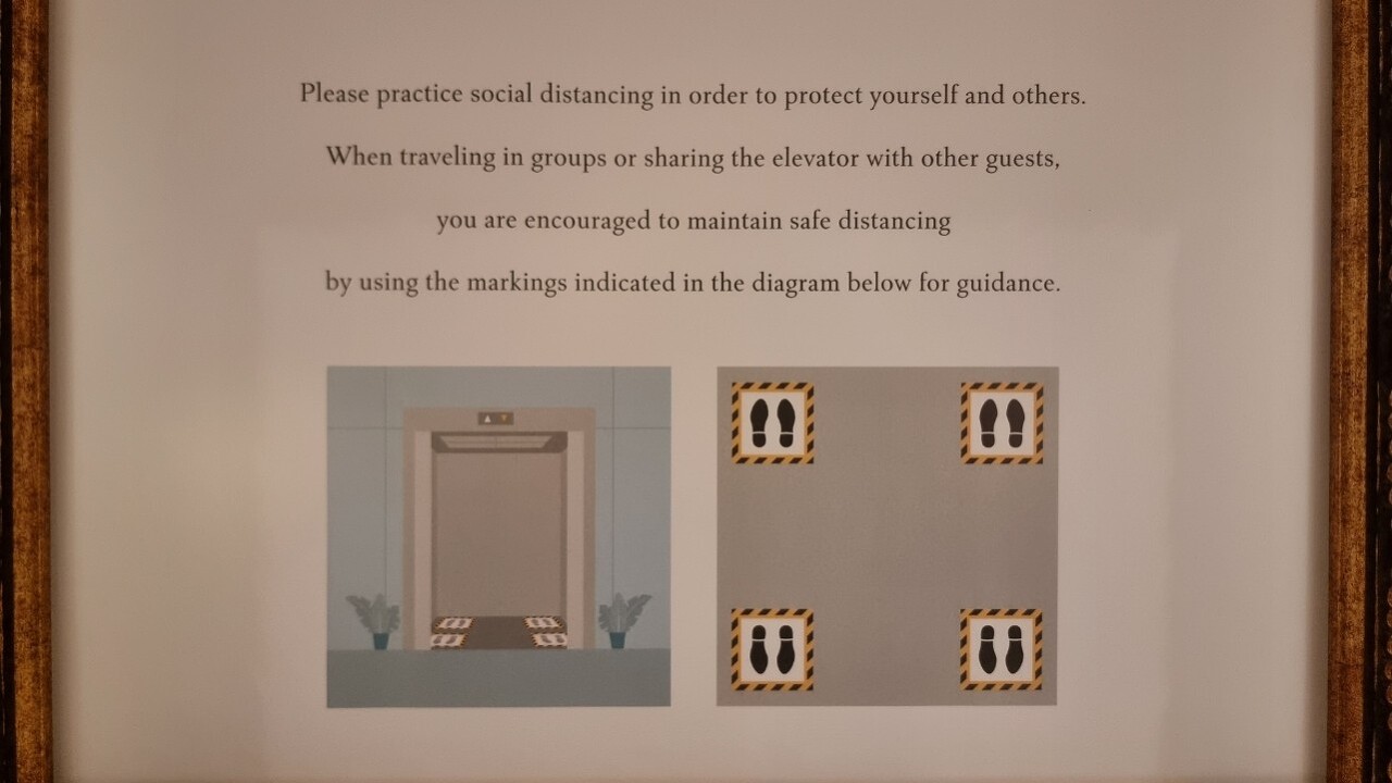 엘리베이터를 탔는데 이 시국에 올바른 엘리베이터를 타는 위치가 안내되어 있었습니다.