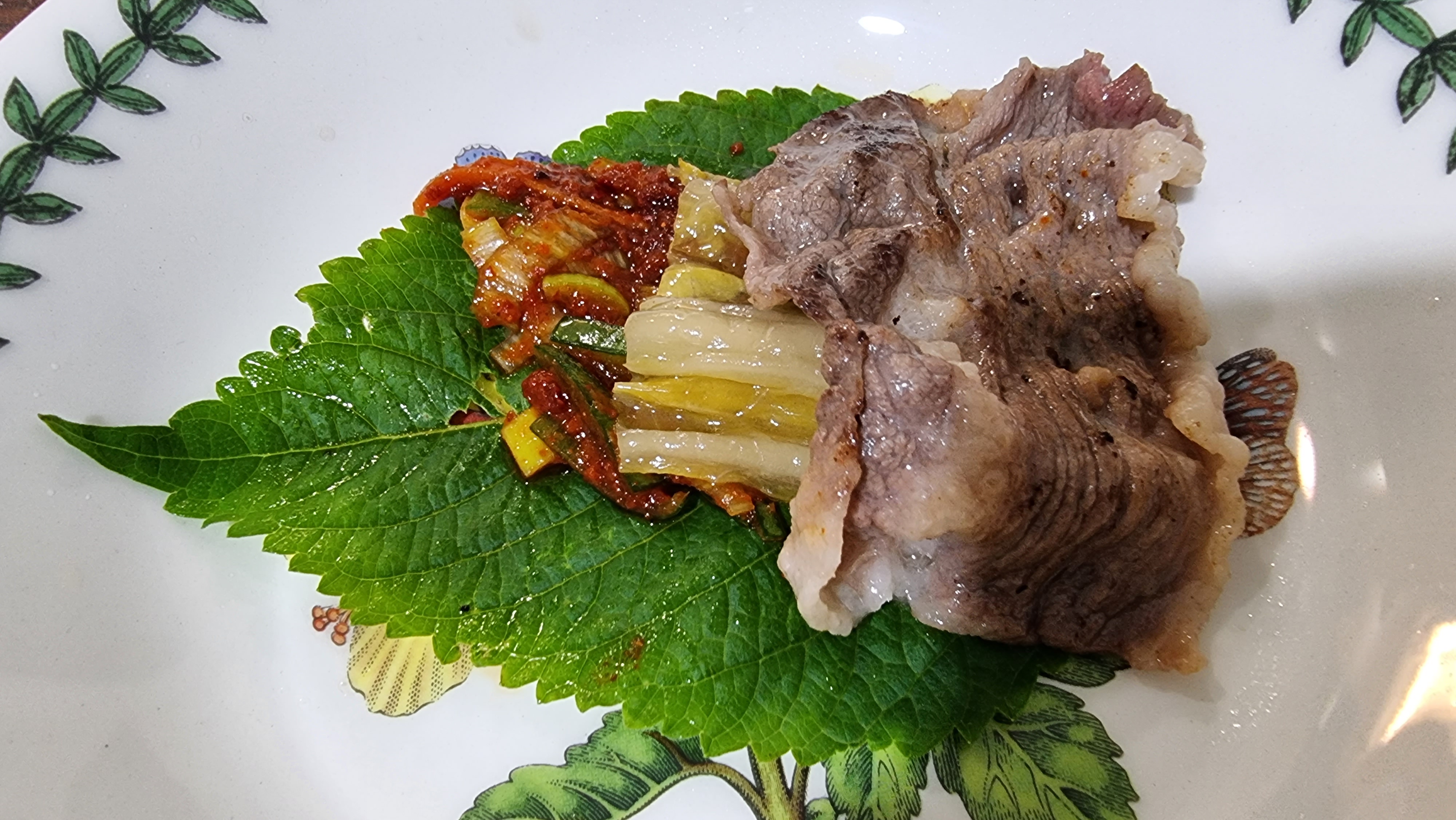 구운 차돌박이와 함께 구운 묵은지 올려서 꿀꺽..