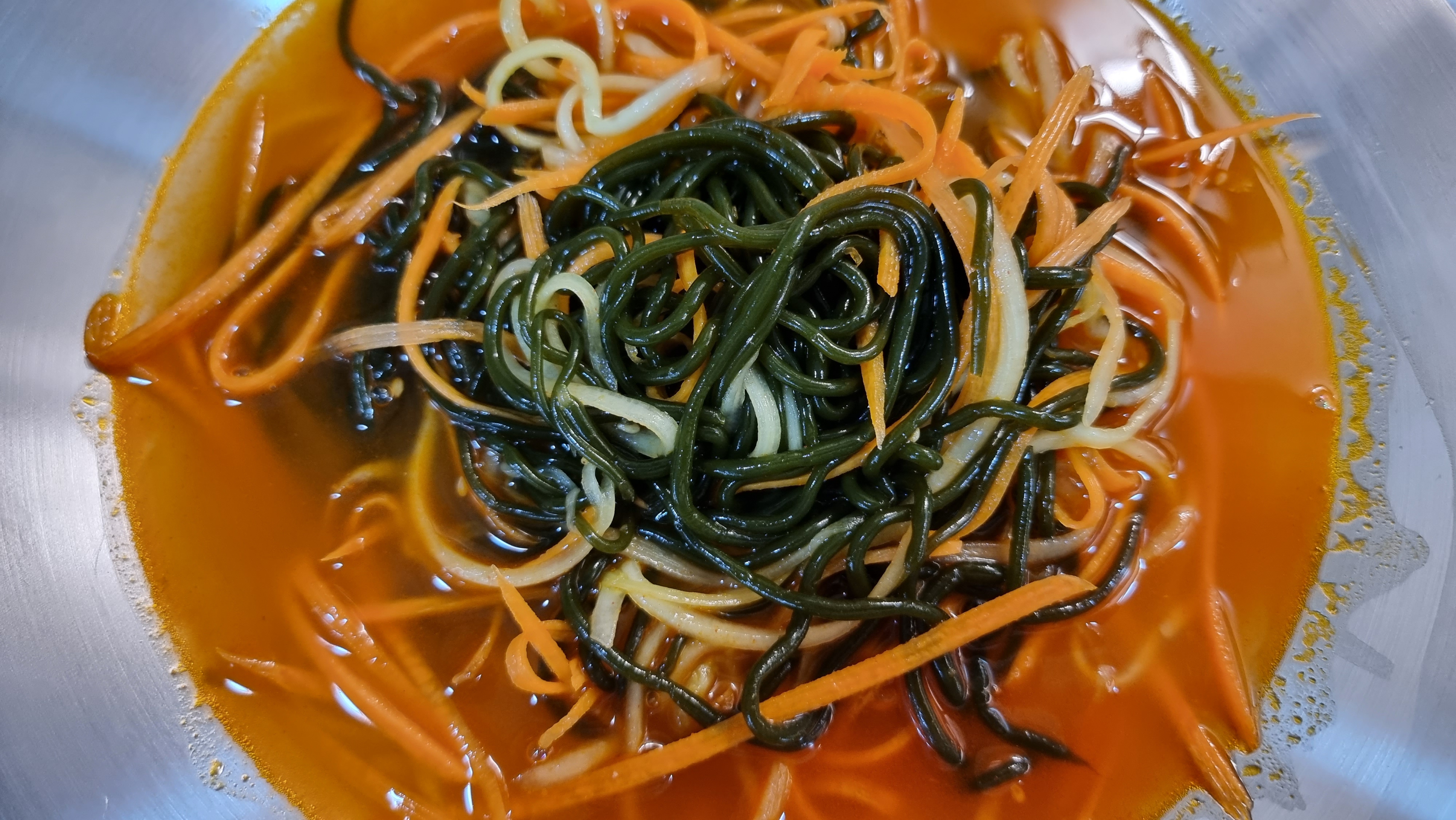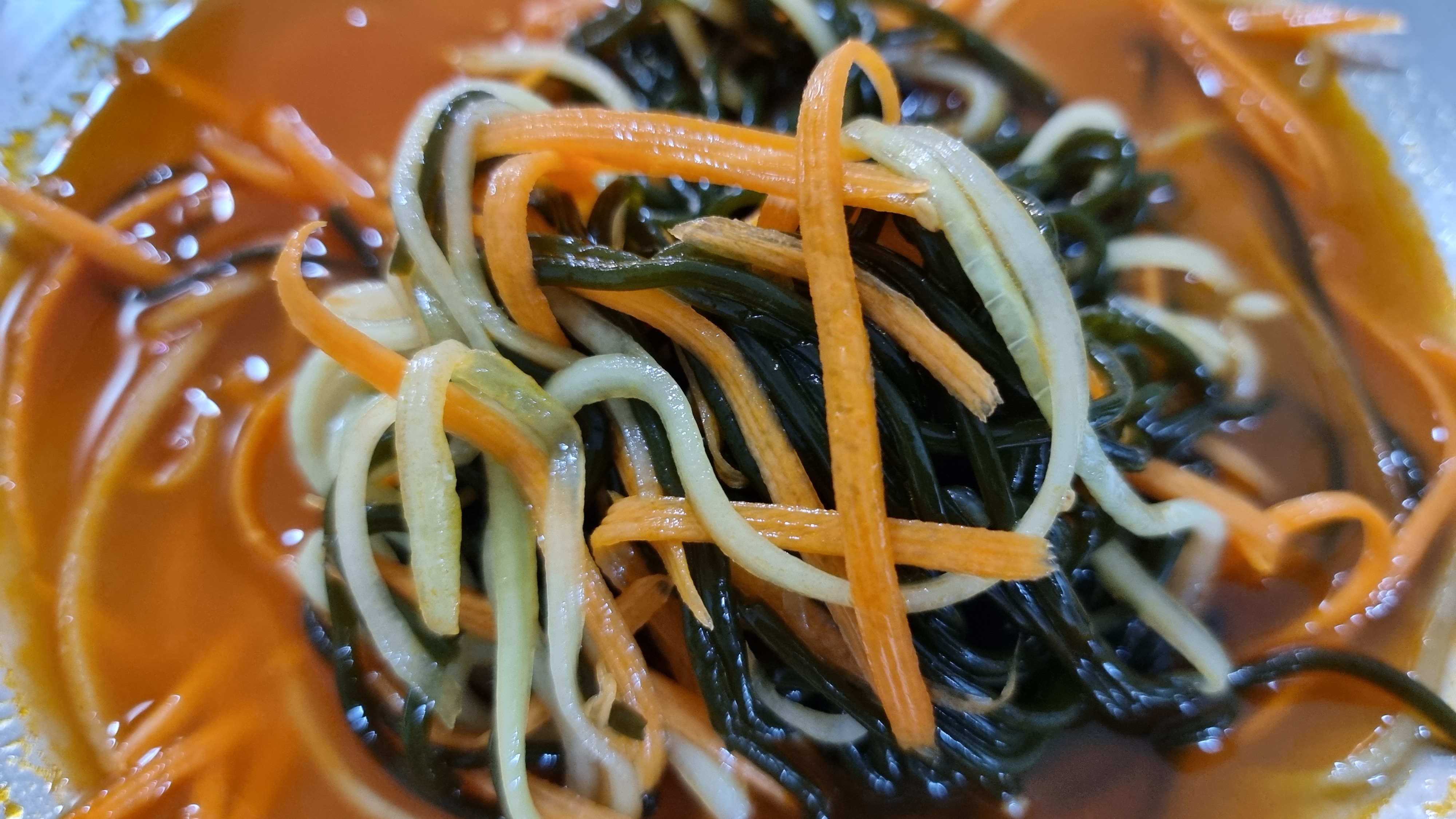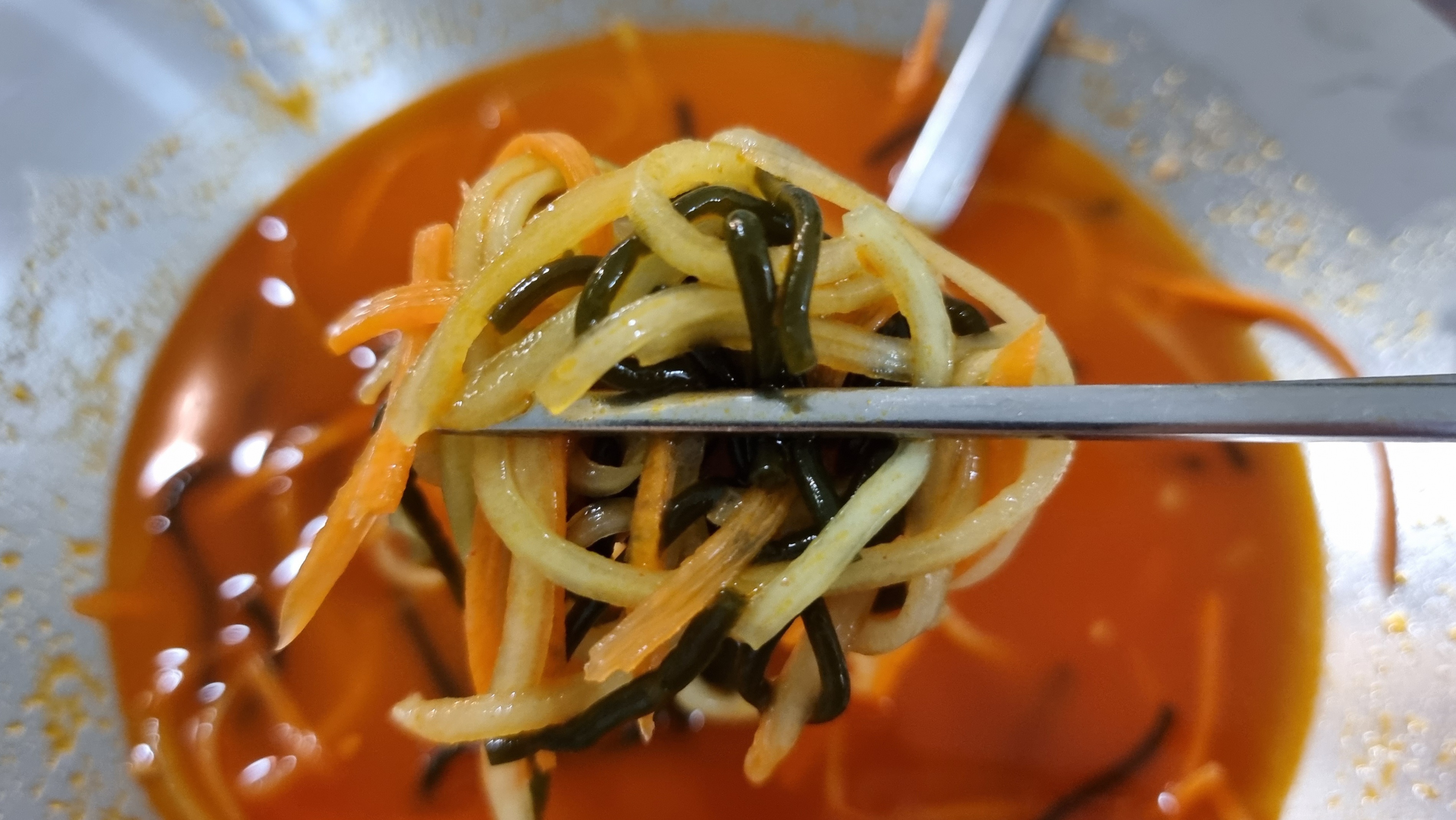 칼로리 낮은 미역국수에 당근 오이도 함께 들어있어 양도 든든합니다.