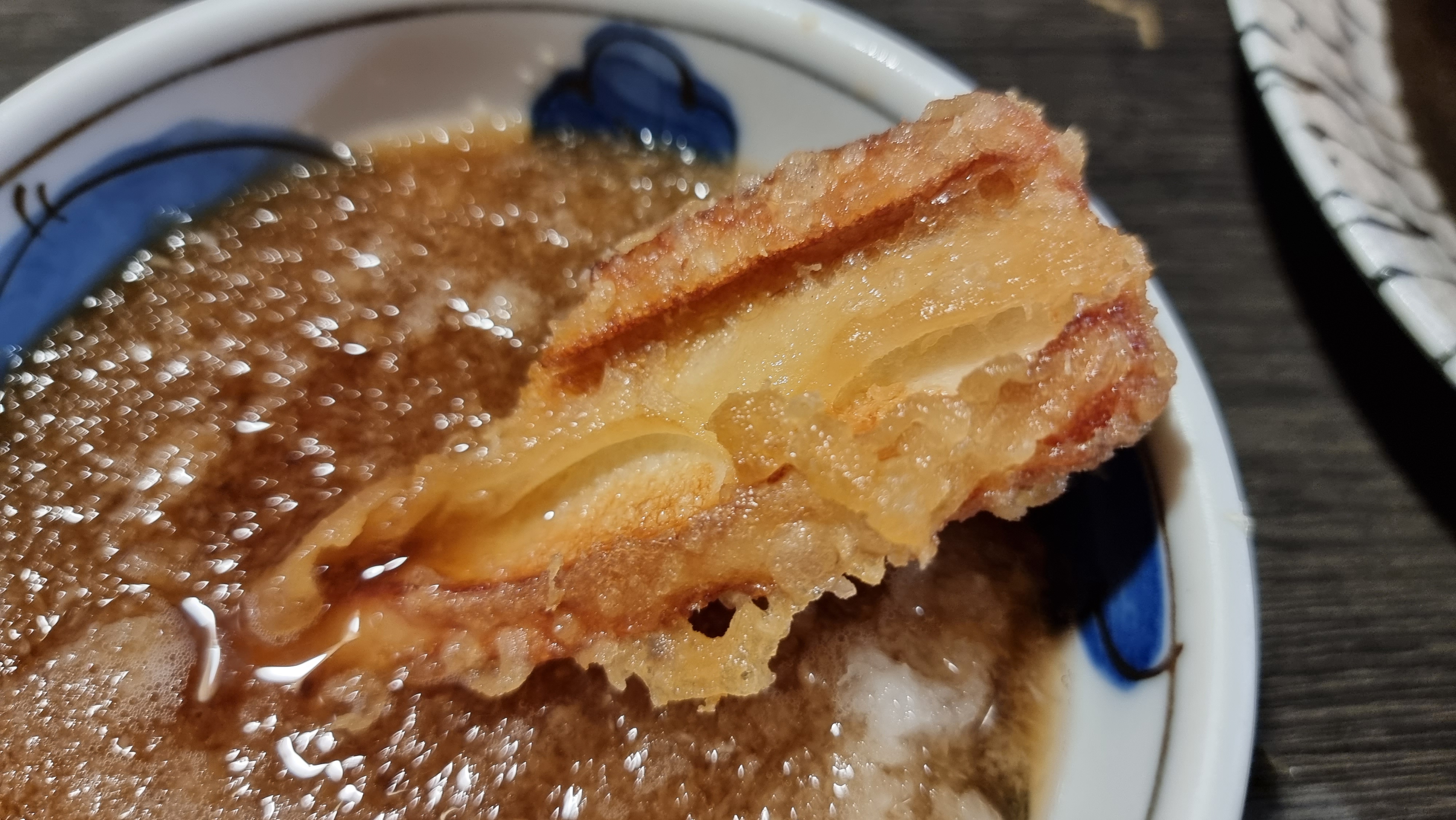 마 튀김은 정말 생소한 느낌과 맛이었습니다. 그냥 간장에 찍어서 먹어봤습니다.