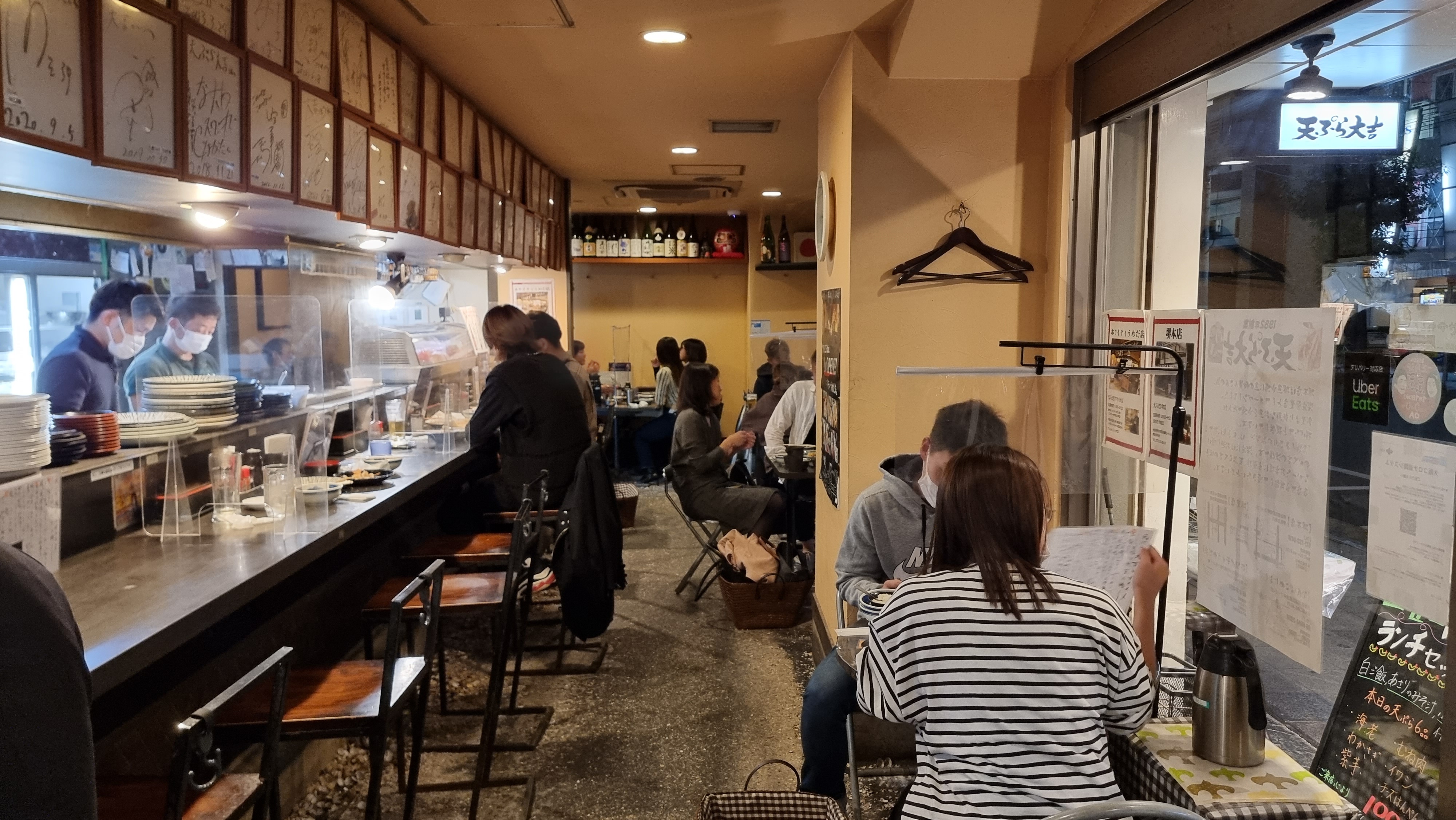불금 저녁이라 도톤보리 인근 술집마다 손님들이 정말 그득그득 했었는데 덴뿌라 다이키치는 남바 중심가에선 조금 떨어진 곳에 있는지라 그닥 많이 붐비지는 않았었습니다.