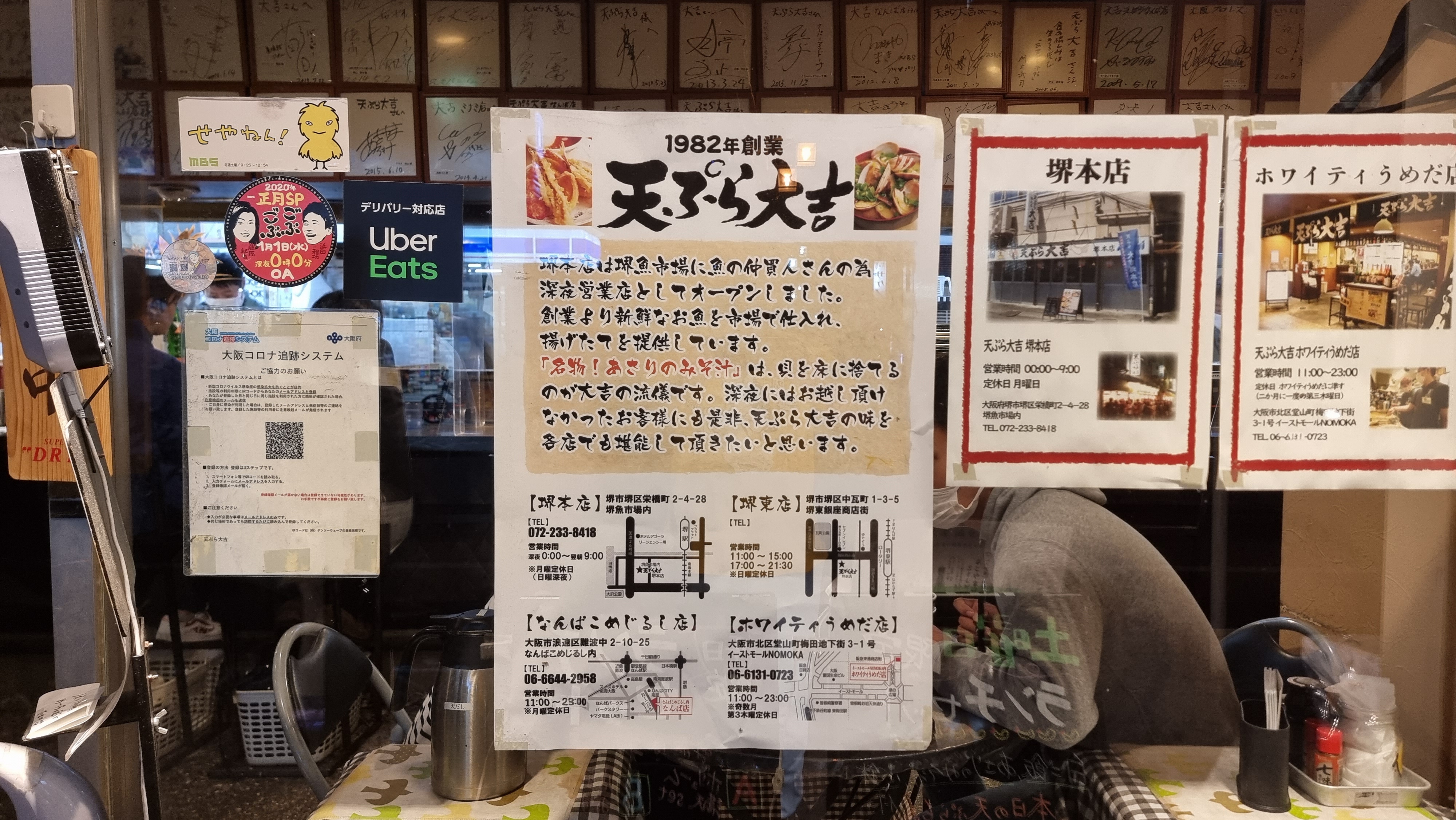 후쿠오카에 튀김 및 튀김 정식 전문점 히라오가 있다면 오사카에는 덴뿌라 다이키치, 대길 튀김집이 있습니다.