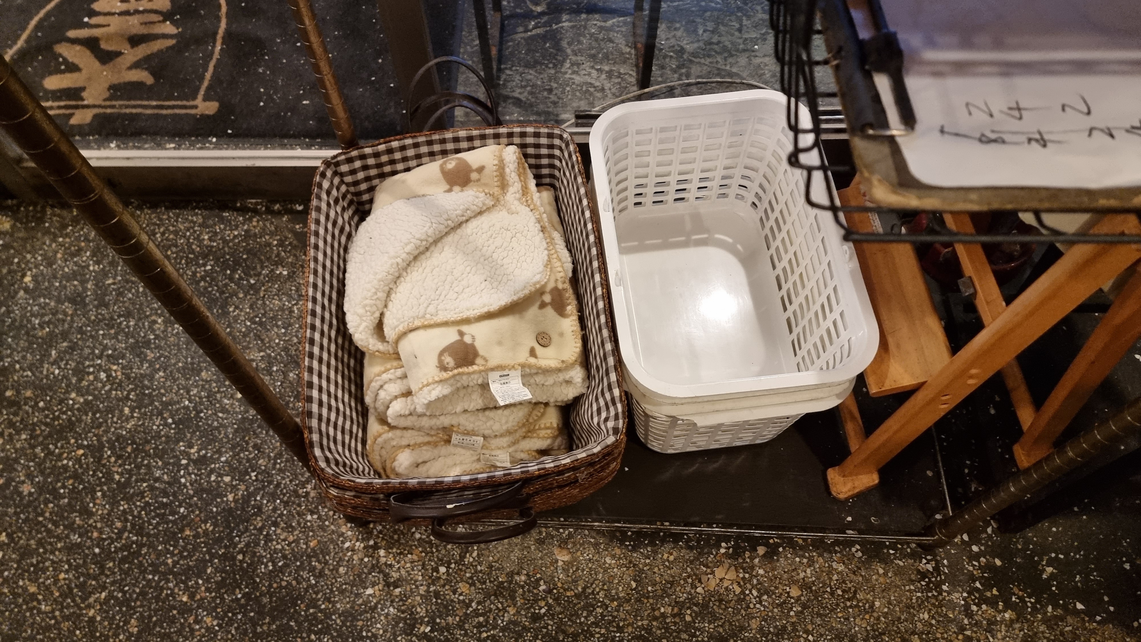 좌석에 앉으면 직원들이 소품이나 가방을 담을 수 있는 바구니를 가져다 주십니다.