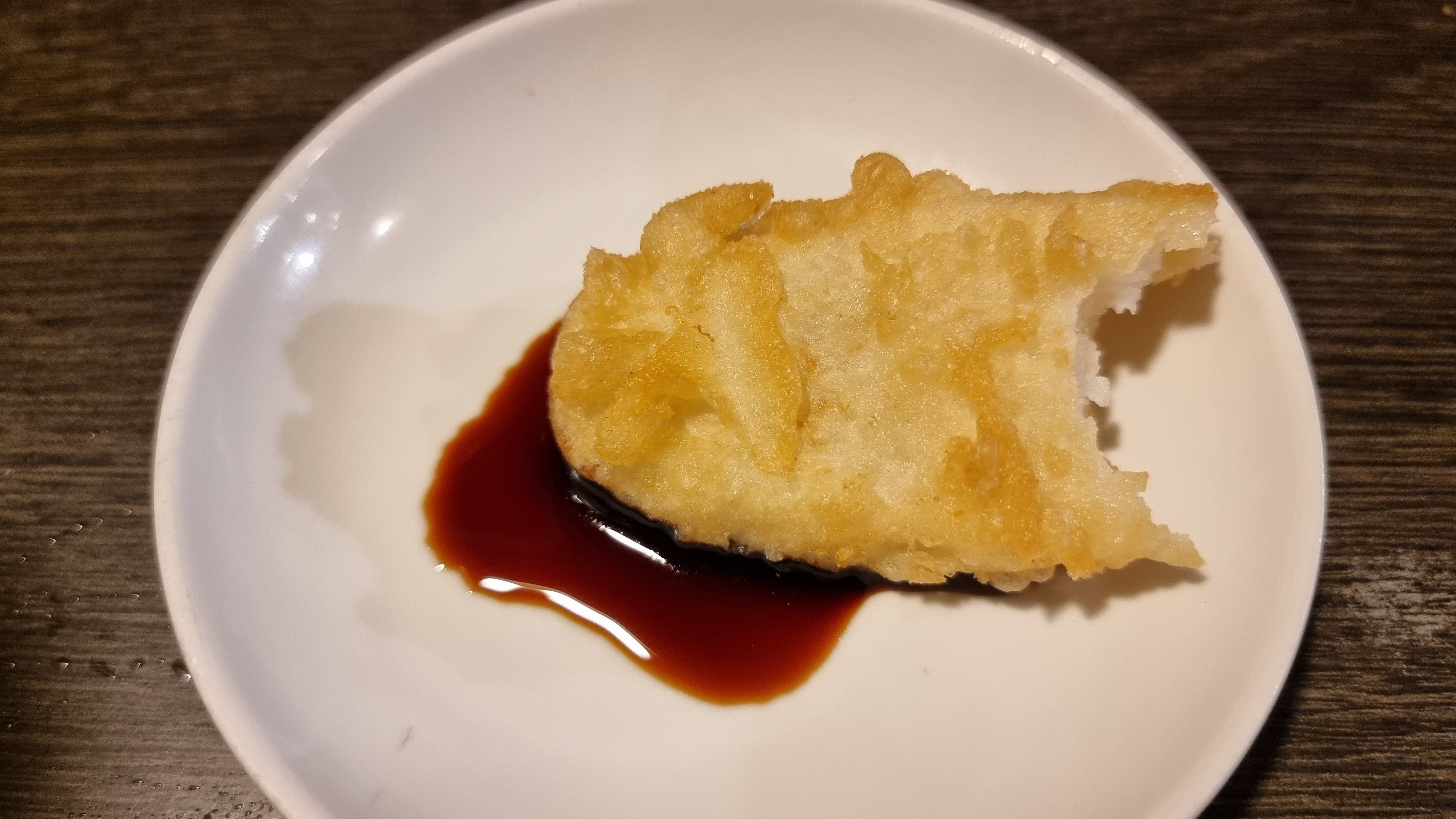 결론부터 얘기하자면 한국에서 몇년간 먹었던 텐동집이나 튀김 정식집들의 튀김들은 한결같이 튀김옷이 두껍고 바삭함을 넘어 딱딱하거나 아니면 너무 부드럽기만 했는데 덴뿌라 다이키치의 튀김은 튀김옷이 바삭하면서도 부드럽고 얇았고 재료와 튀김옷의 조화가 정말 좋아서 입천장 까지거나 하지 않고 정말 편안하고 맛있고 즐겁게 잘 먹을 수 있었습니다.