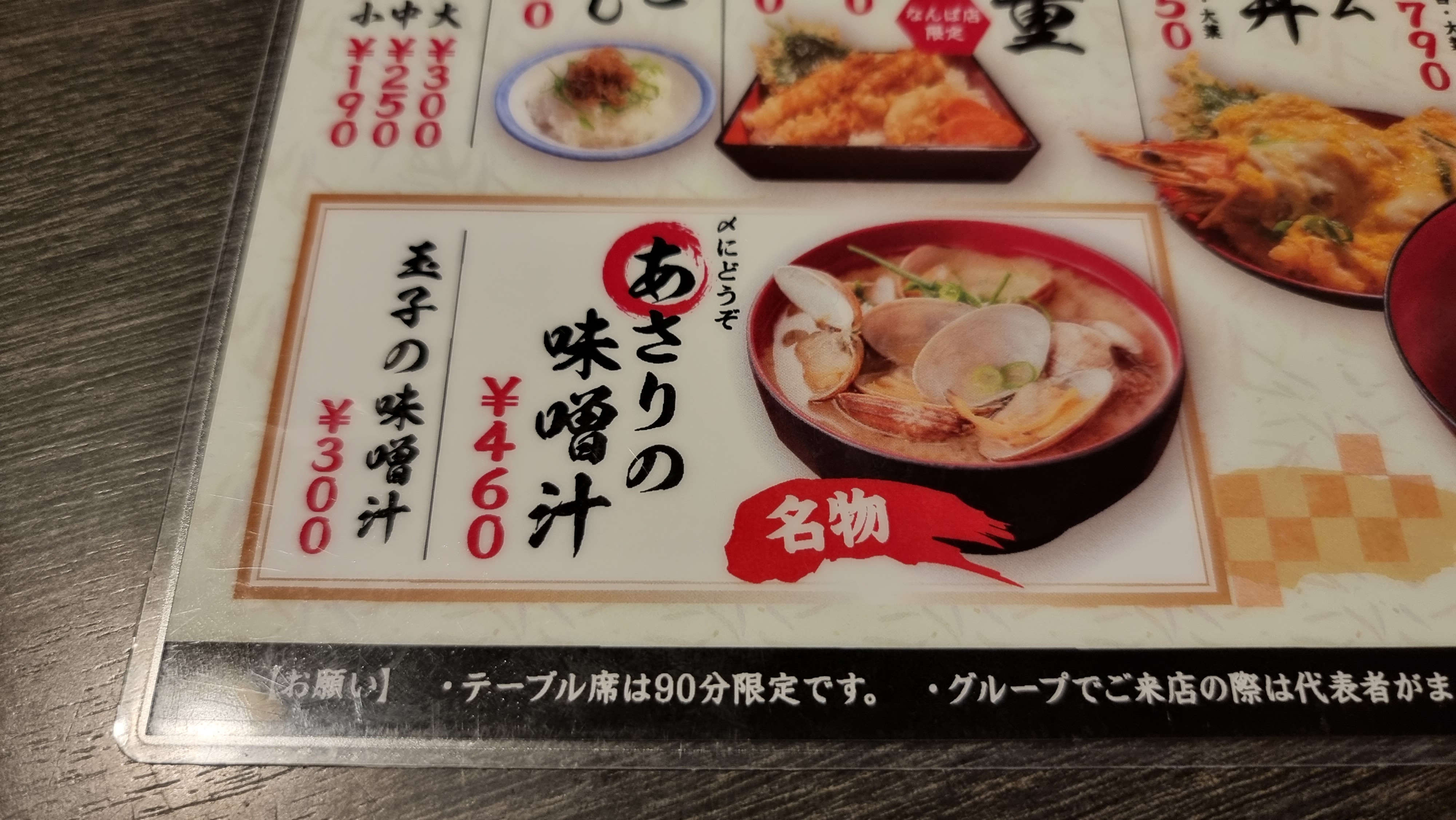 사진이 있으니 확실히 주문 가능한 조개 미소국 입니다. 명물 이라는 한자가 눈에 띄었습니다.