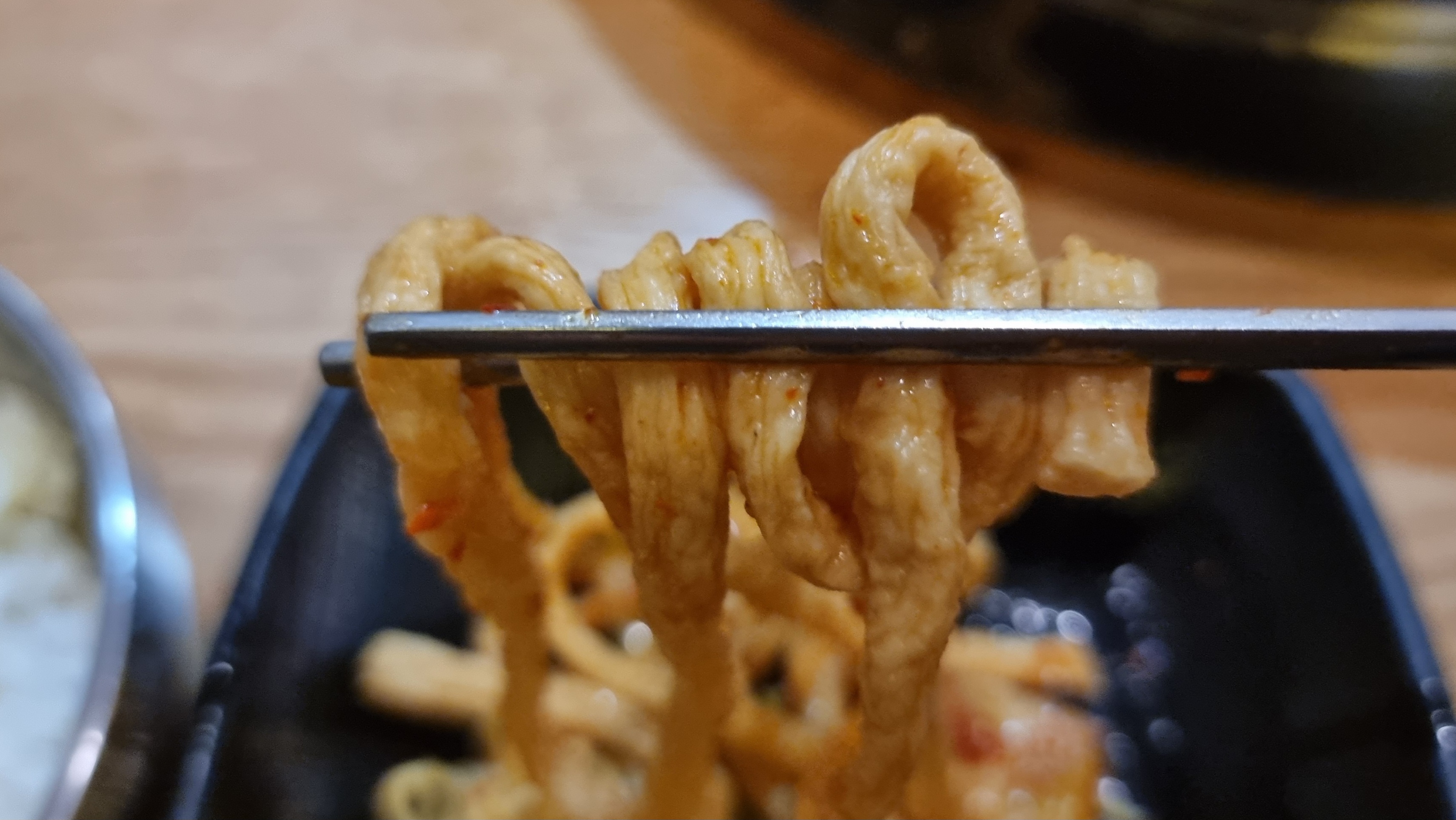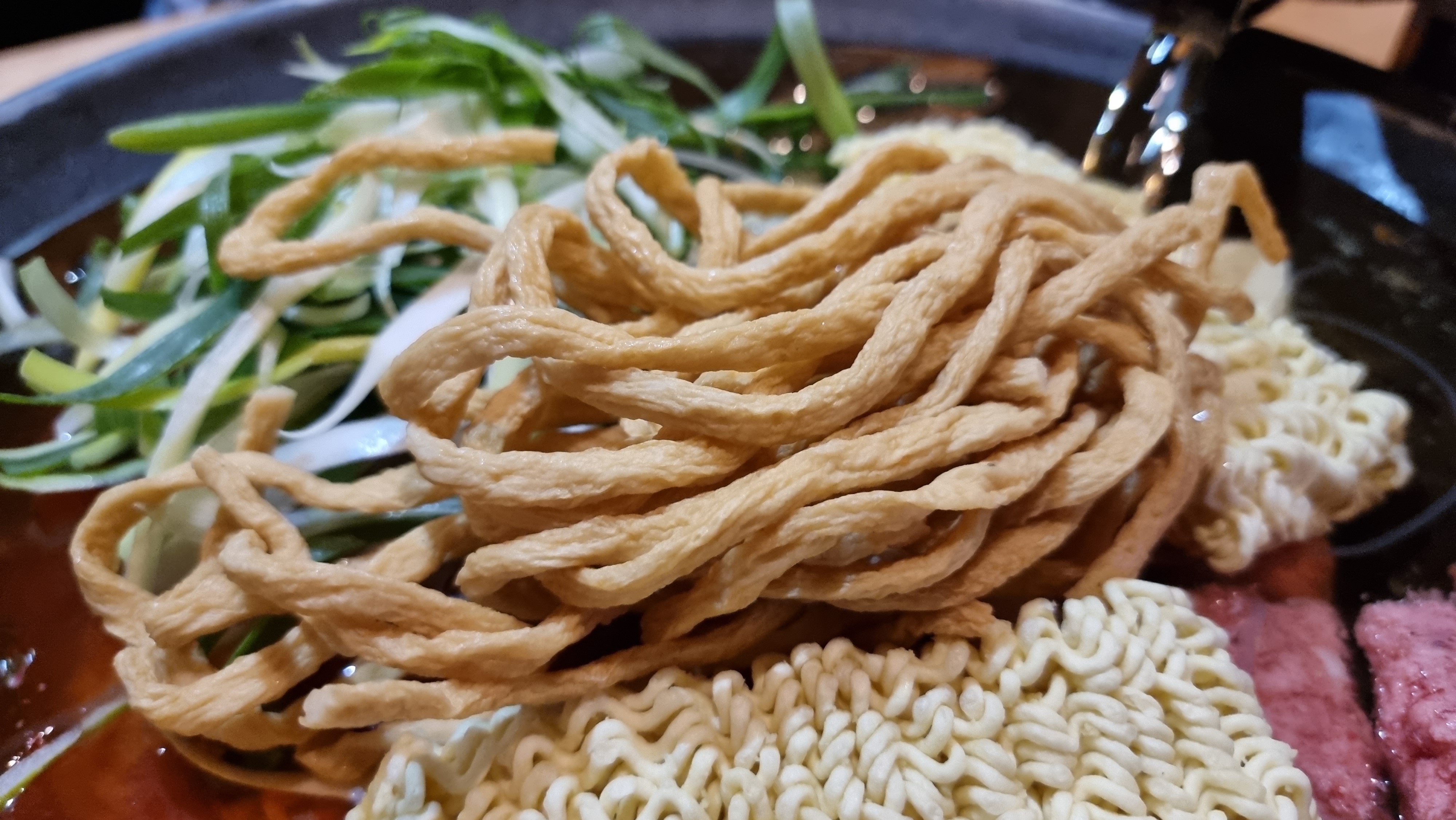어묵면, 라면, 당면 이렇게 세가지 사리를 한번에 집어서 후루루루룩 한입..