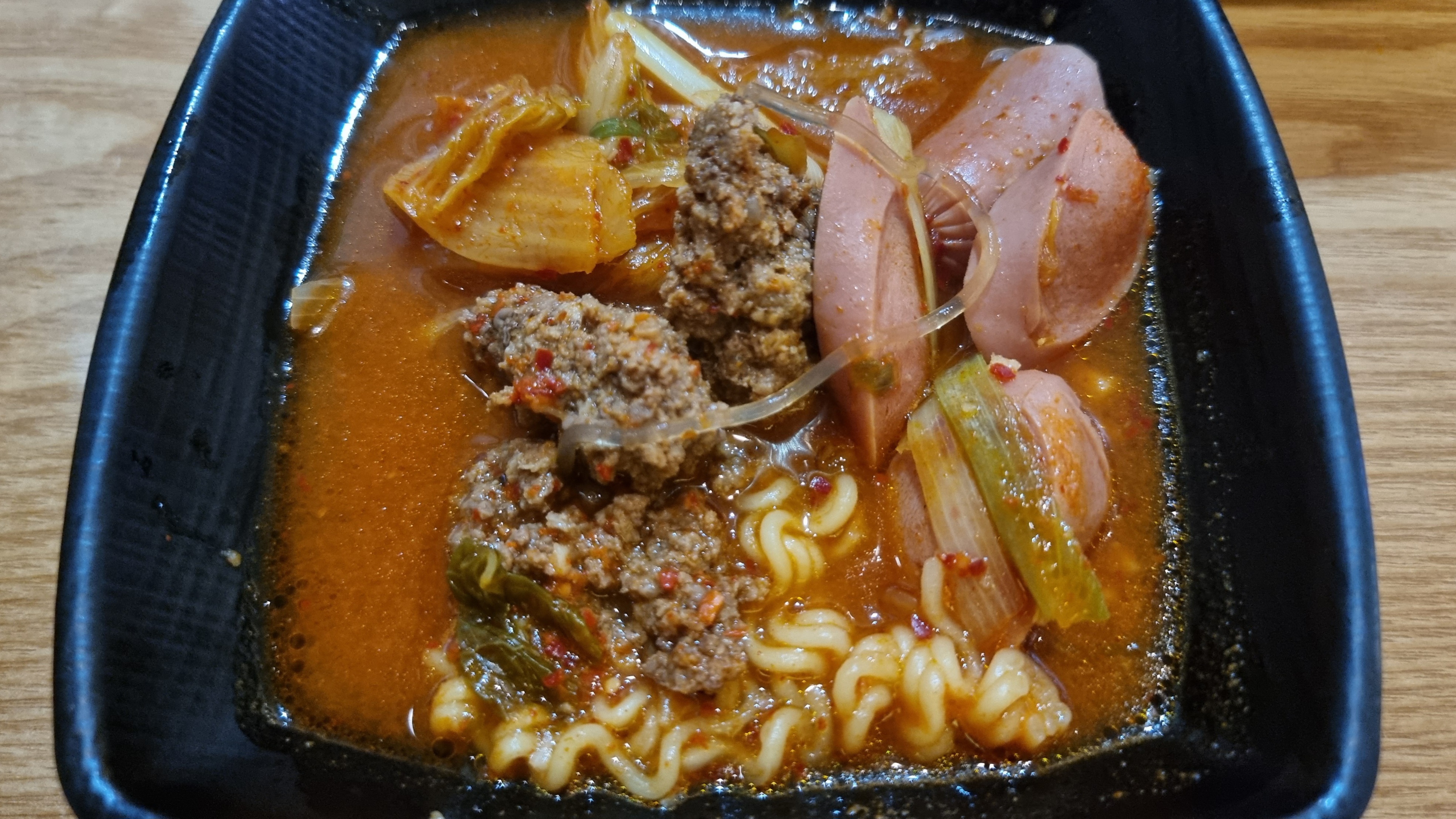 양배추와 당근 그리고 양파등의 각종 채소들이 참 많이 들어가 있으며 쏘세지들도 두세 종류가 들어 있습니다.