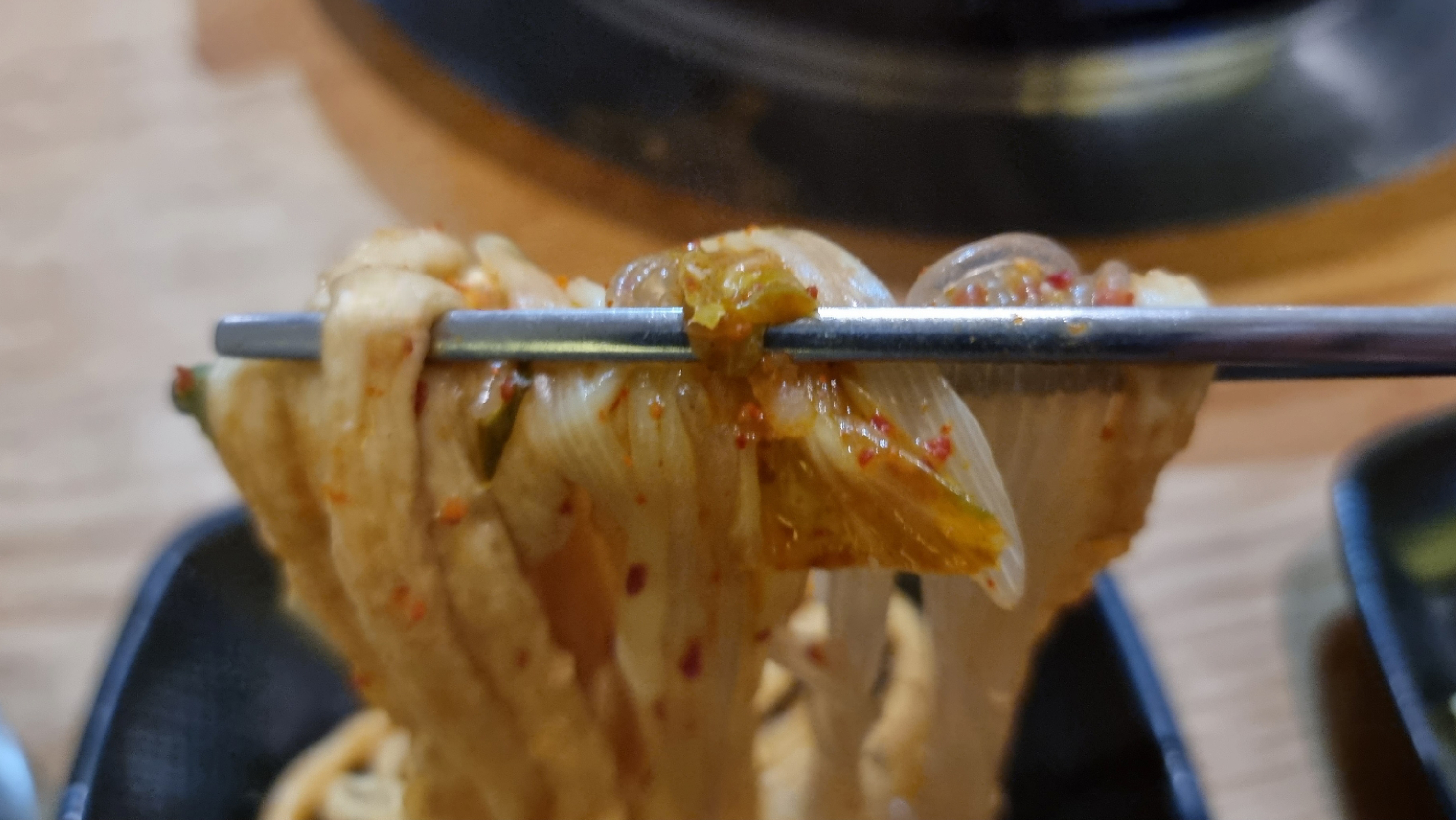 저는 조금 꼬들꼬들한 사리의 식감을 좋아하는지라 먼저 퍼서 담았습니다.