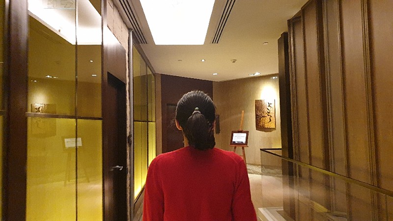 엘레베이터를 사이에 두고 한쪽에는 호텔 라운지 조식당이..