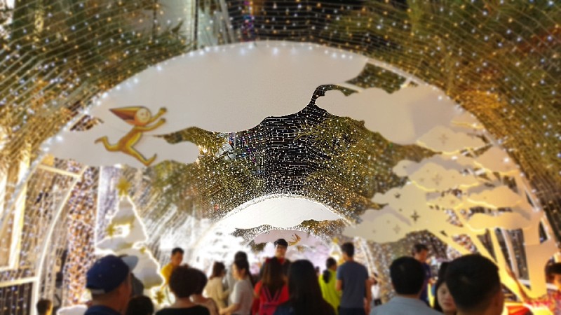 지상철 BTS를 타러 가기전에 이쁜 조명이 설치된 곳도 구경 해보고..