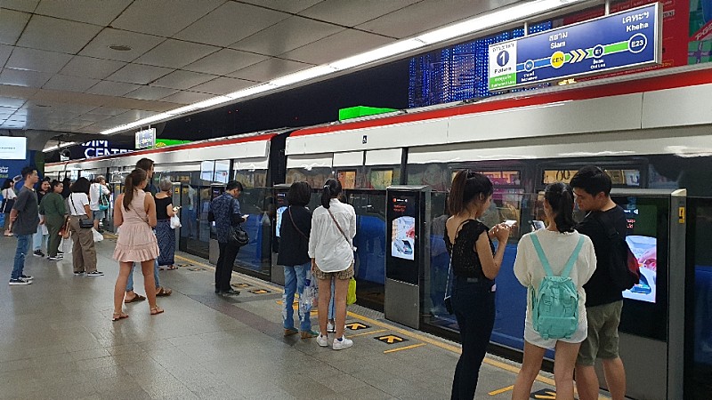 사판탁신 역을 지나는 BTS는 선로가 하나인지라 탈때마다 어렵습니다.