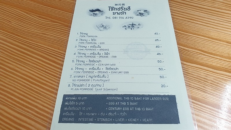 방콕 미슐랭 빕구르망 리스트에 포함된 죽 전문점 입니다..