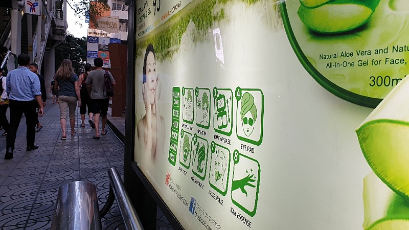 버스 정류장 뒤편 광고판에선 열기가 막 느껴지고..