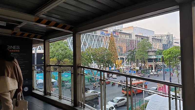 칫롬역과 연결된 고가도로 스카이워크로 올라오니 라차프라송은 벌써 2020년 카운트다운 분위기에 푹 빠져 있는 것처럼 보였습니다.