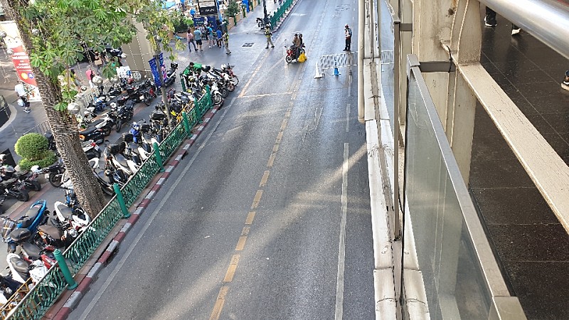 벌써 도로 통제가 시작된 칫롬 라차프라송 거리..