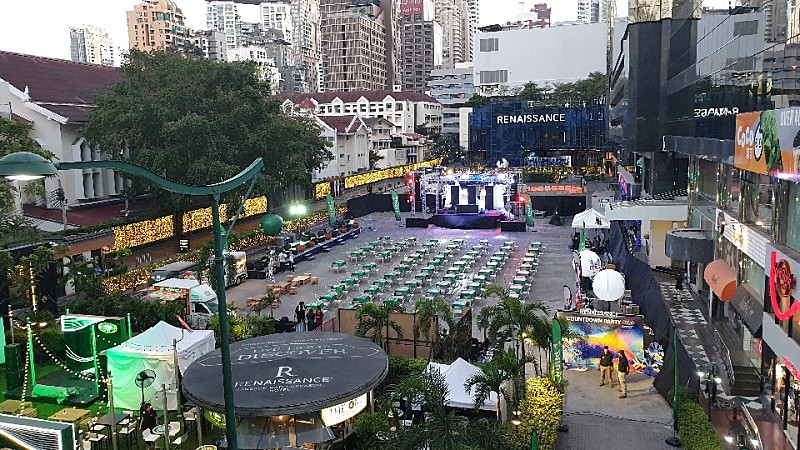 BTS 칫롬 역으로 가는길에 눈에띄는 르네상스 방콕 라차프라송 호텔의 카운트다운 야외무대..