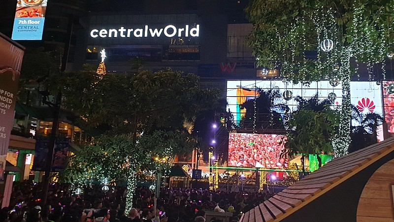 센트럴 월드 플라자 쇼핑몰 안쪽에서 바라본 연말 카운트다운 행사 무대..