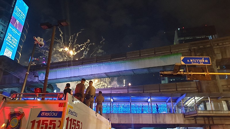 10여분간의 불꽃놀이와 환호성이 지속되었고 방콕의 신년 카운트다운 행사는 끝이 났습니다.