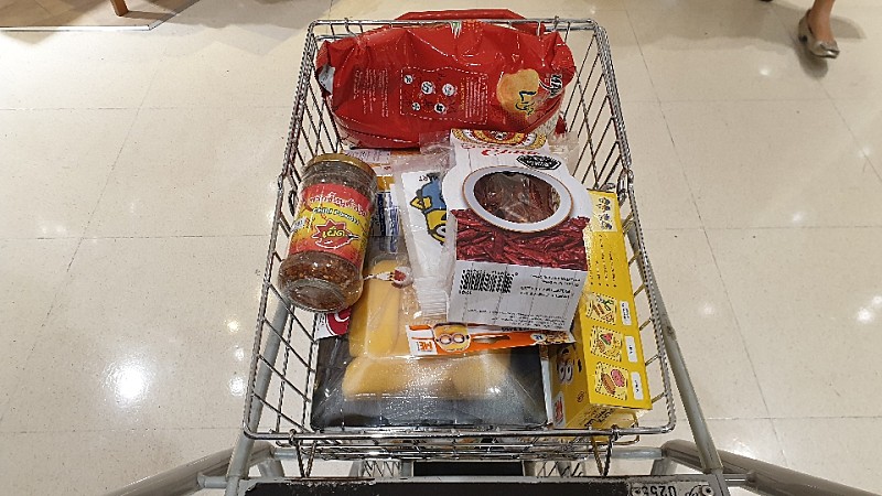 입가심용 까까 몇개와 으깬 고춧가루를 사고 쇼핑 마무리를...
