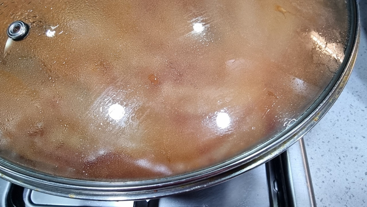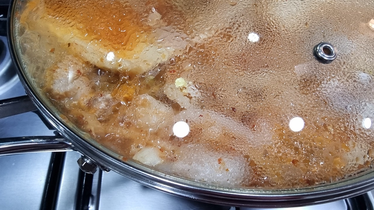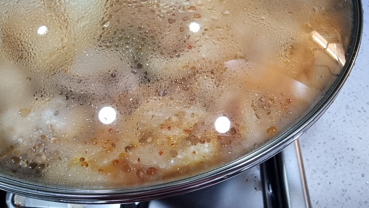 그리고 다시 웍 뚜껑을 덮어주고 계속 조리를 해줬습니다.