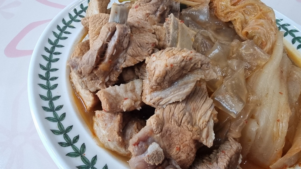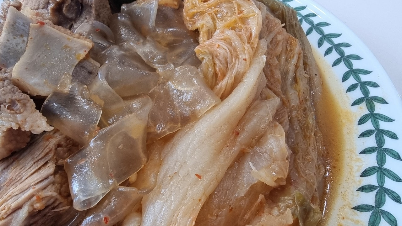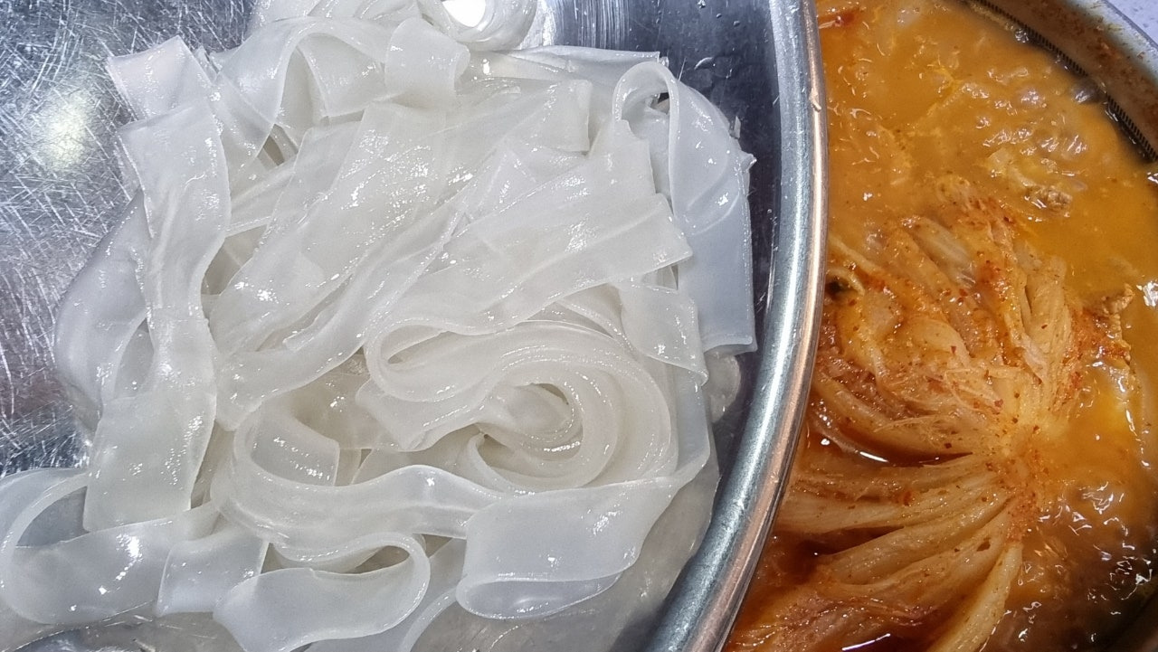 푹 물려서 삶아준 당면과 돼지기름과 국물을 듬뿍 머금은 푹 삶아진 김치...