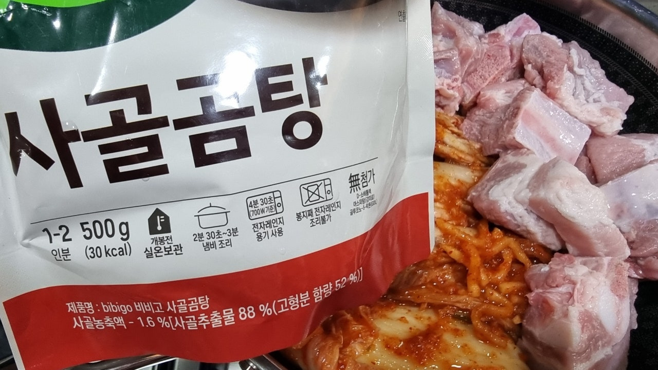 사골곰탕 한 팩 500g을 넣어주고 같은양의 물도 넣어줬습니다.