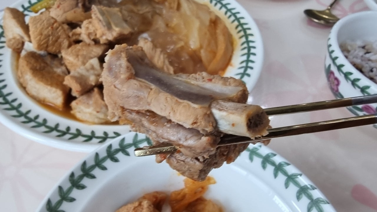 삼겹살이나 목살과는 또 다른 매력이 있는 김치찜에 빠진 돼지갈비 였습니다.