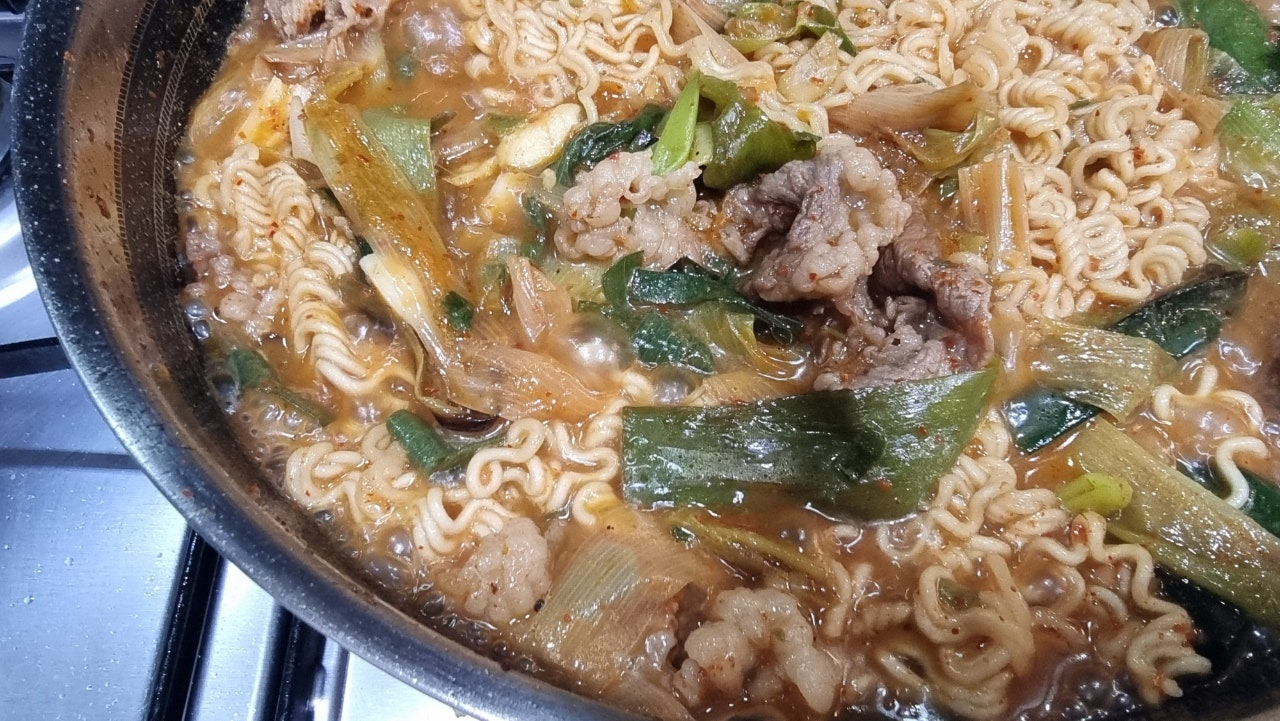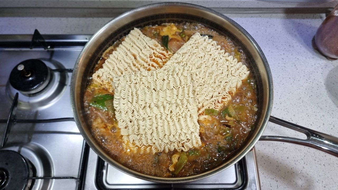 사리곰탕면이 70~80% 정도 익을때까지 끓여주다가...