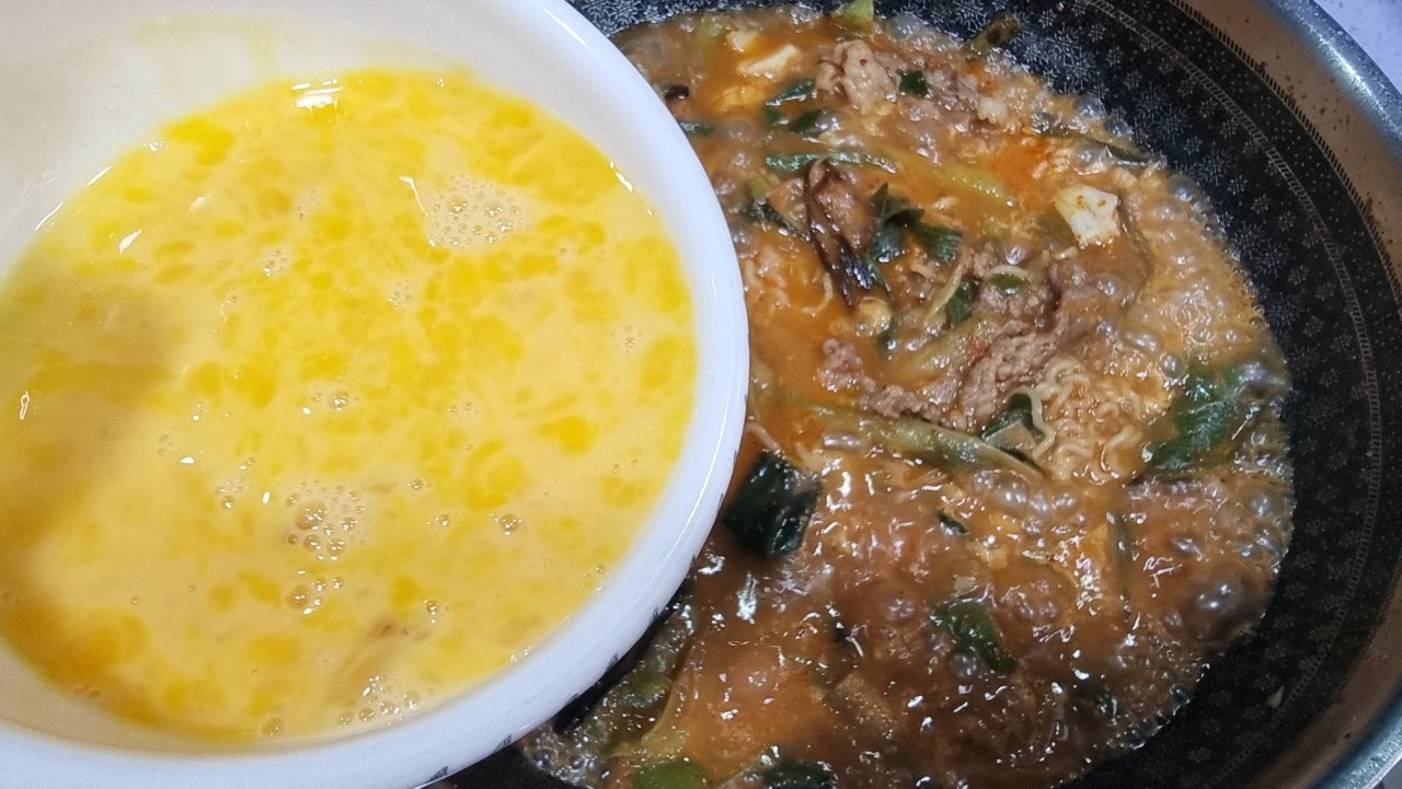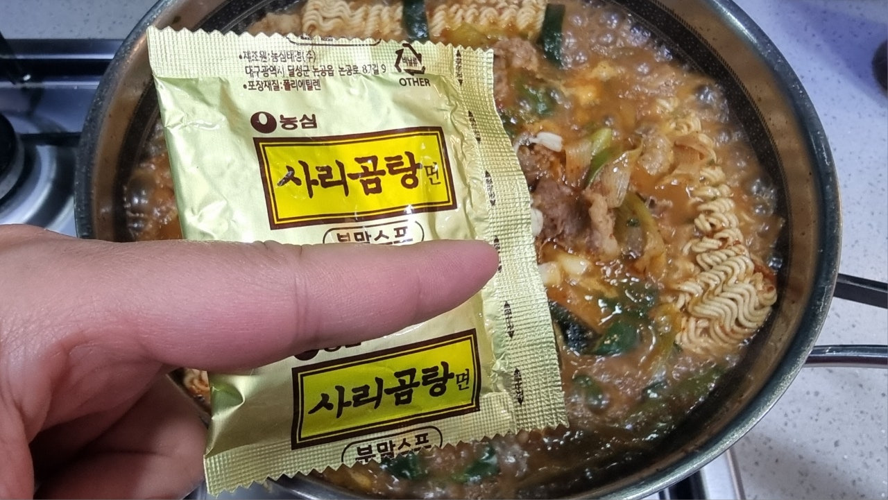 분명 맛있는데 꼭 사리곰탕면 아니라도 어떤 라면을 사용하여도 충분히 맛있을 레시피 입니다.