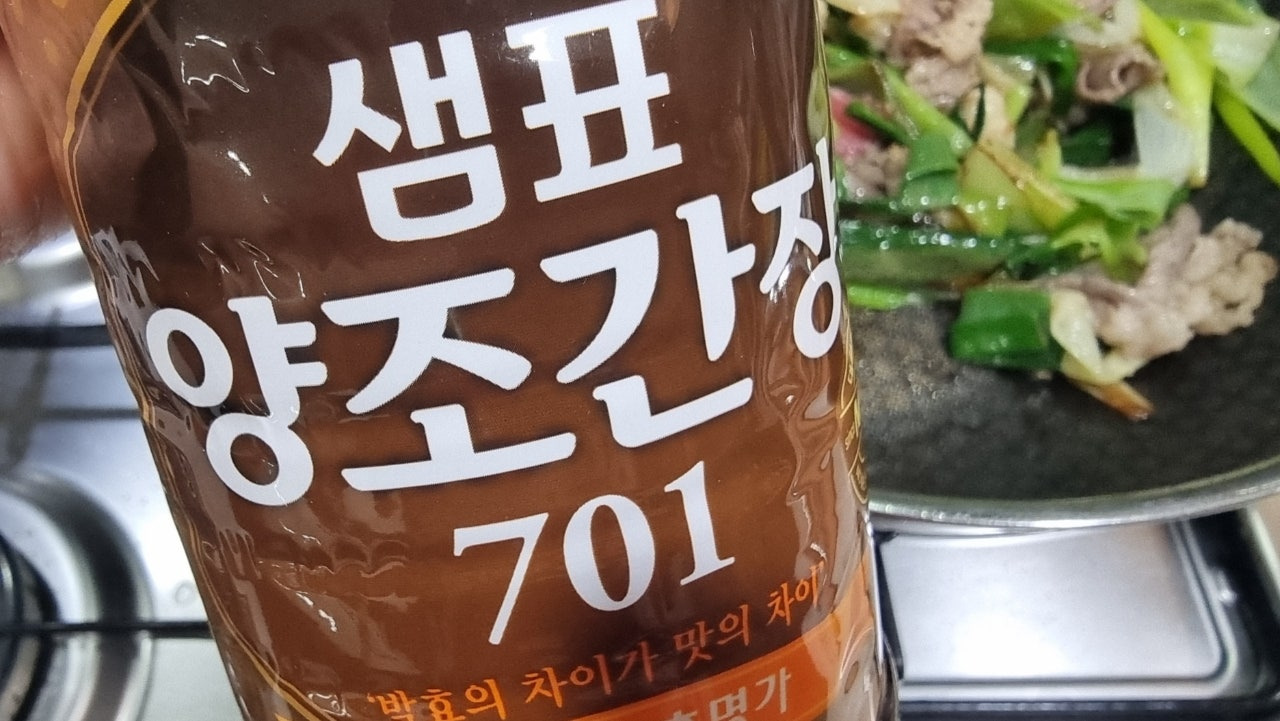 웍 바닥에 양조간장 세 큰 술 정도를 넣어줬습니다.