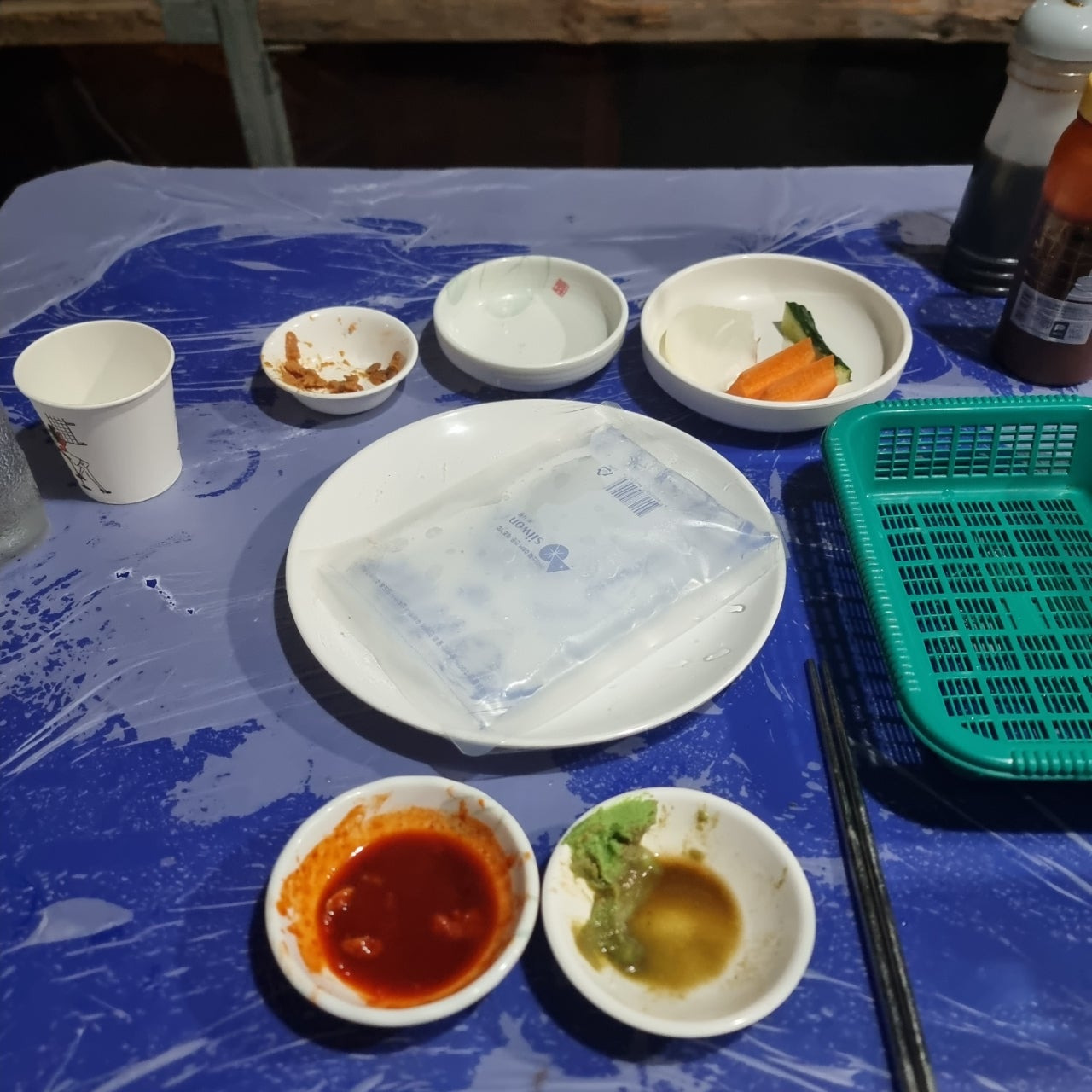 식사를 하는 곳은 조명이 꺼진 옆 창고 같은 장소 였습니다.