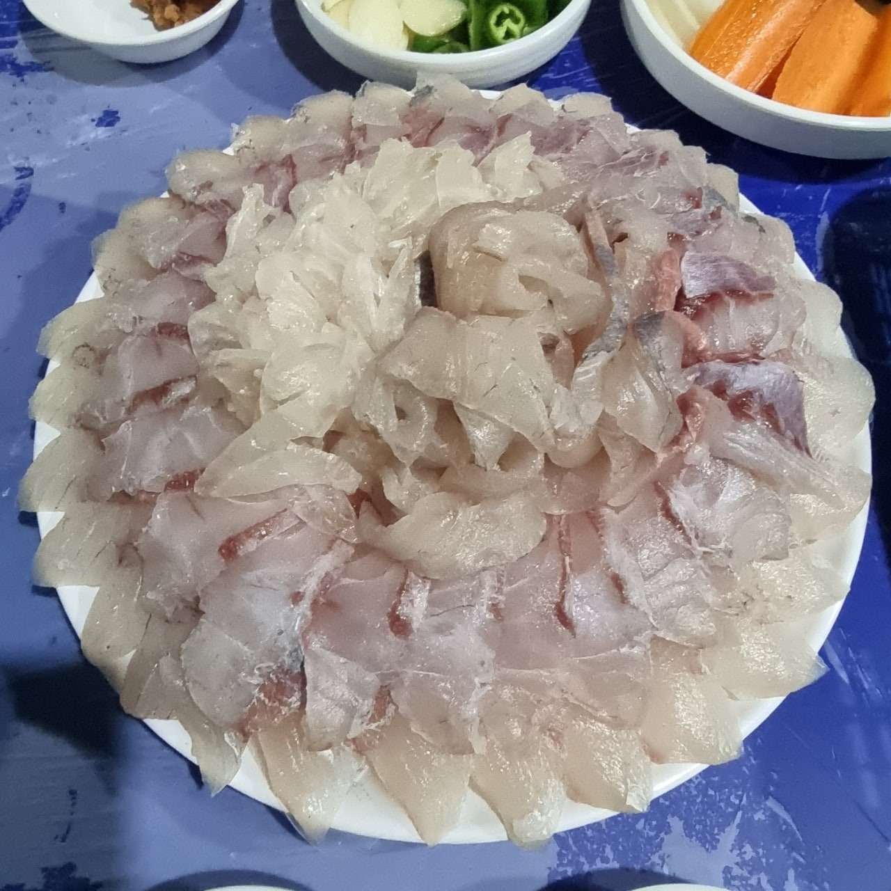 아래쪽에 있는 횟감들은 우럭과 줄돔으로 보였습니다.
