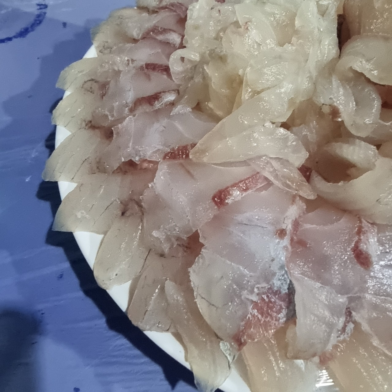 세꼬시, 뼈채썰기로 나온 쥐치와 히라스 외 몇 종류의 횟감들이 더 있었습니다.