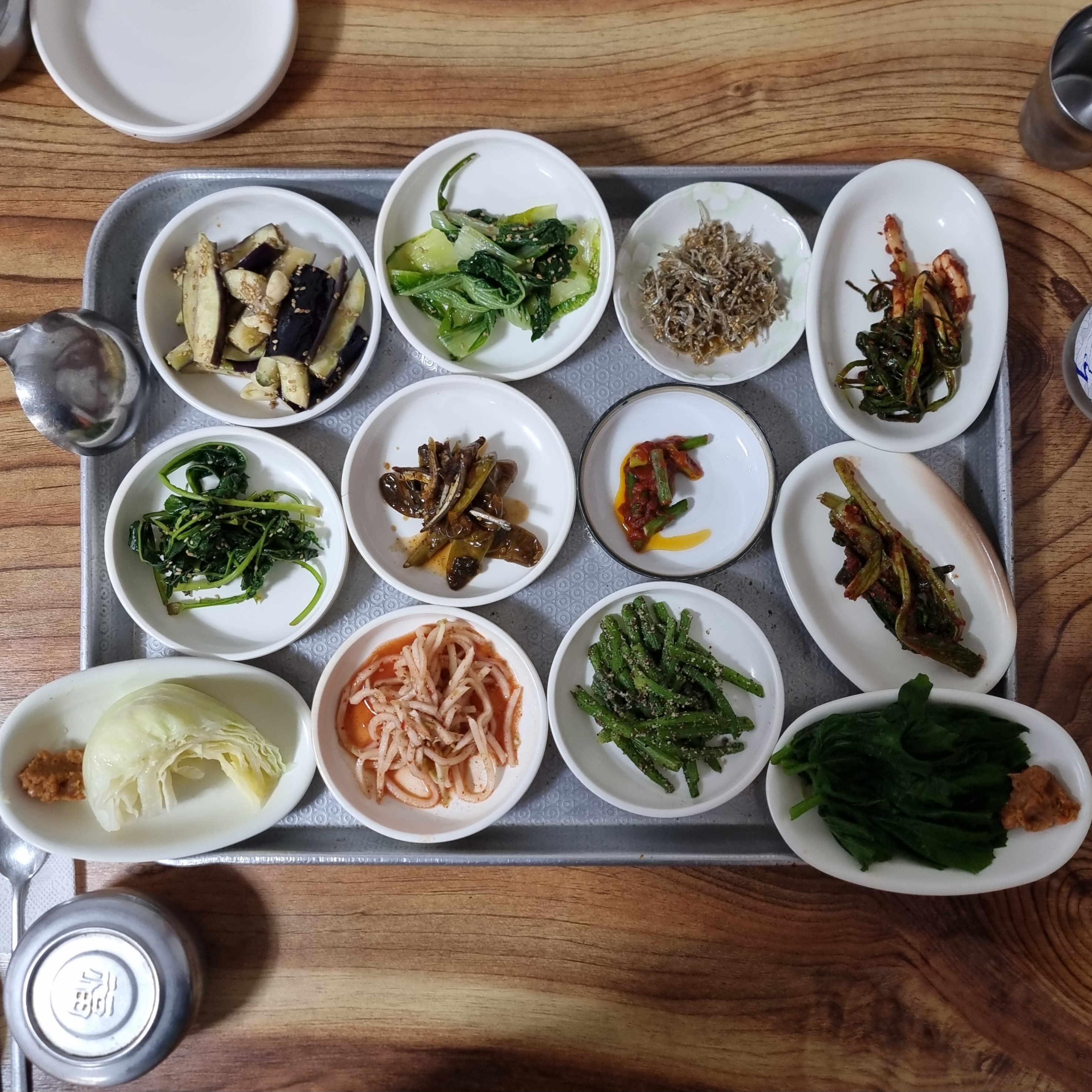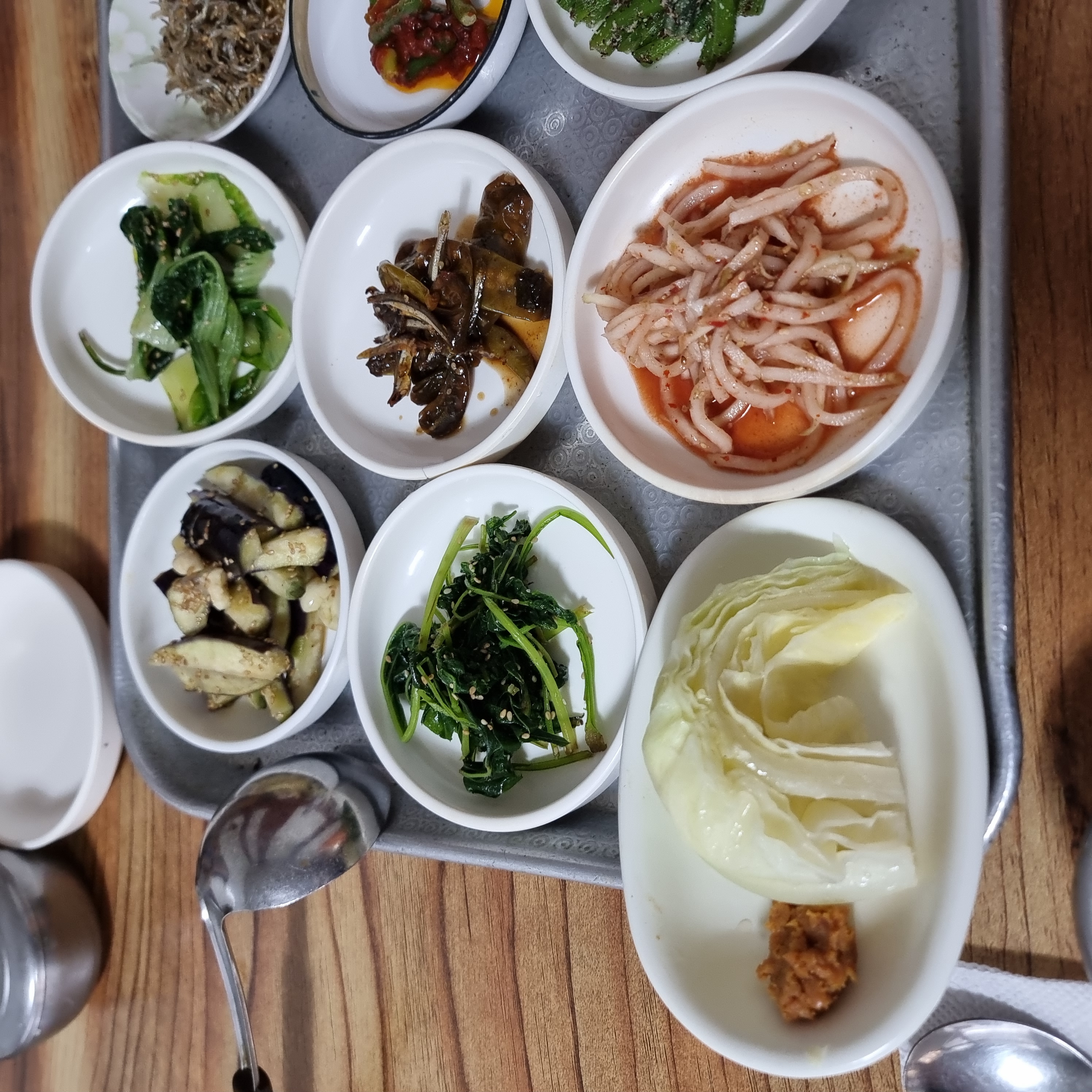 가격도 싼 음식인데 이렇게 푸짐한 기본찬이 12가지나 나옵니다.