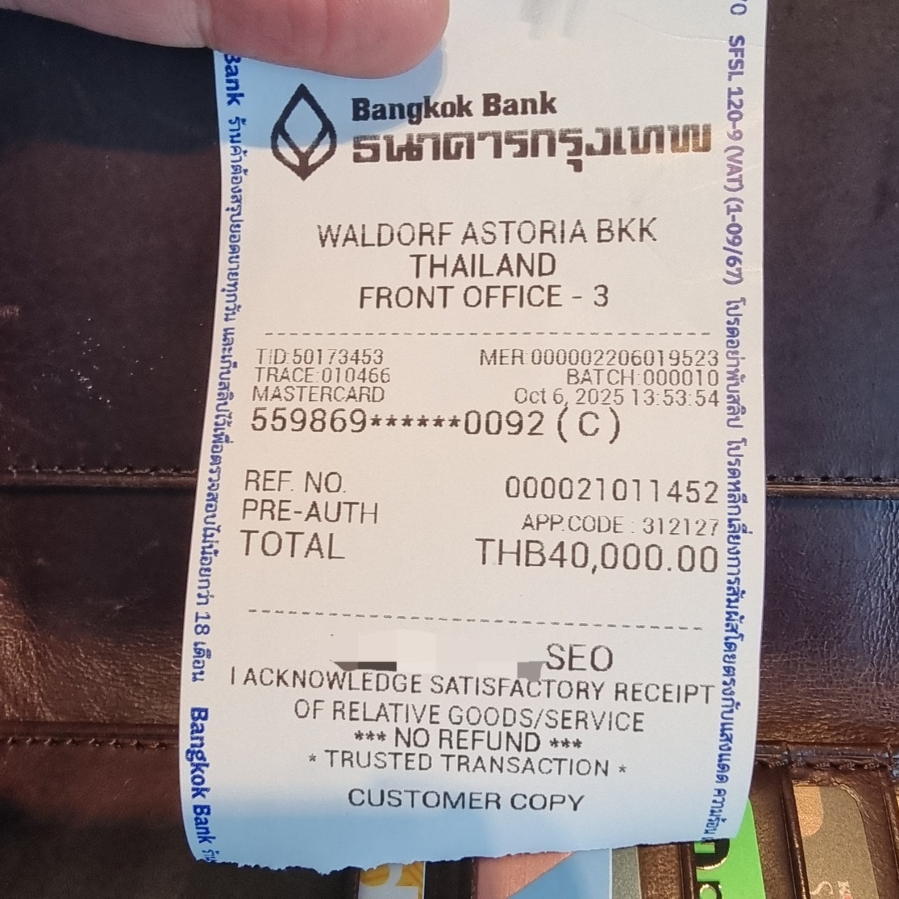 체크인 디파짓이 무려 4만바트...