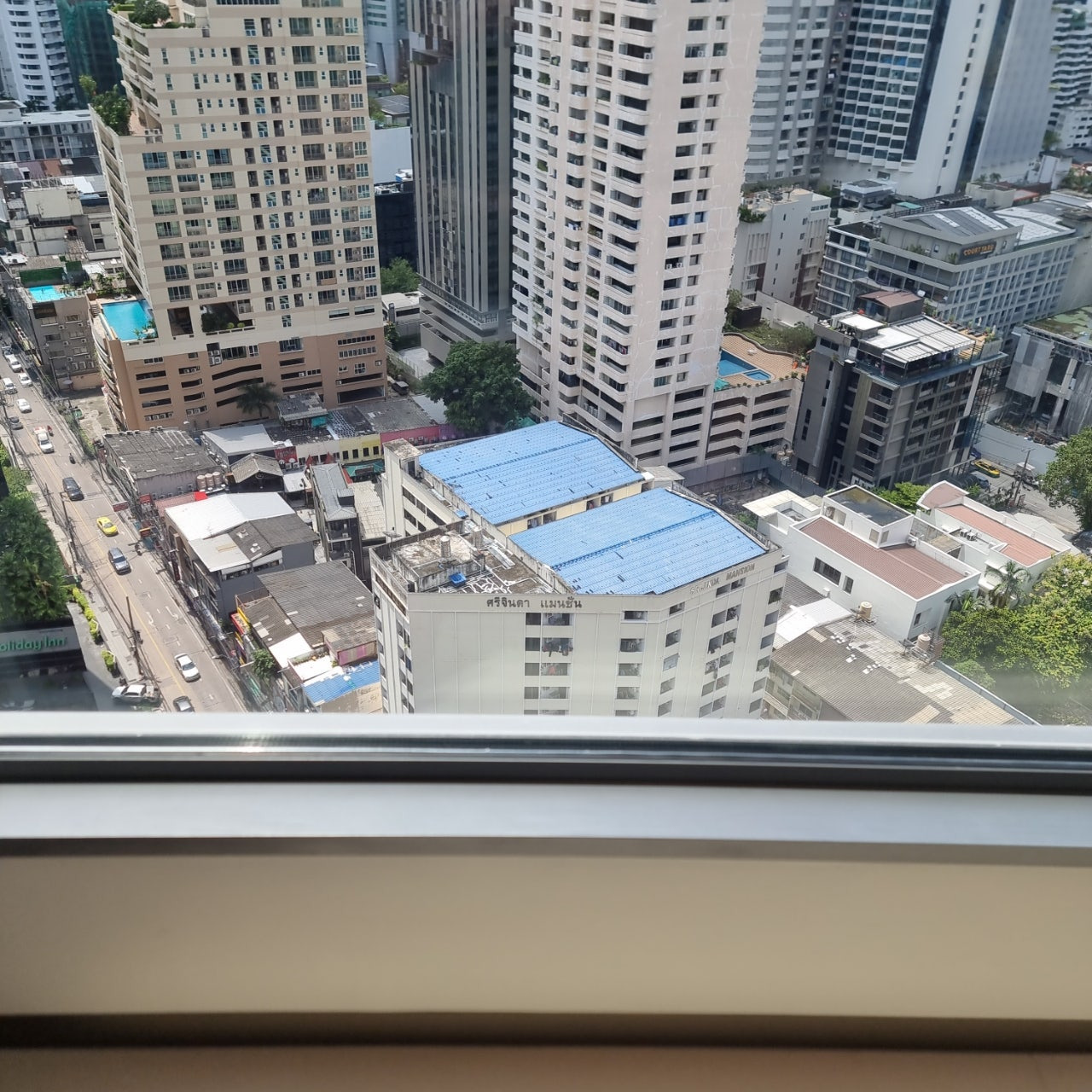 앞 유리를 통해 새로 올라온 건물을 볼 수 있었습니다.