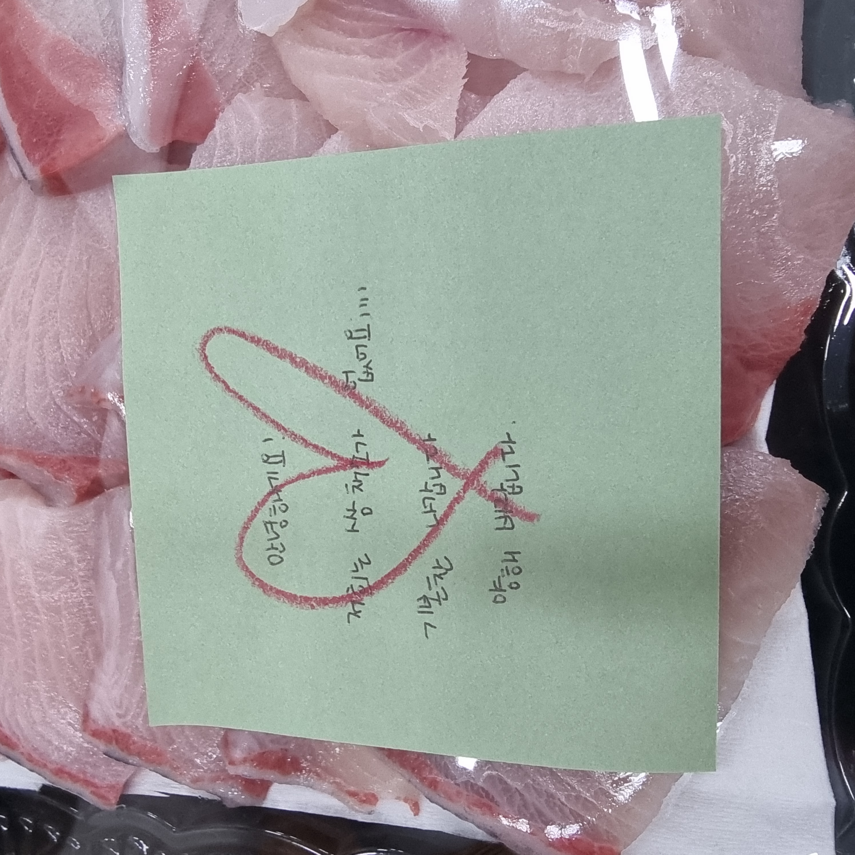 손글씨 쪽지와 함께 배달된 대방오 회...