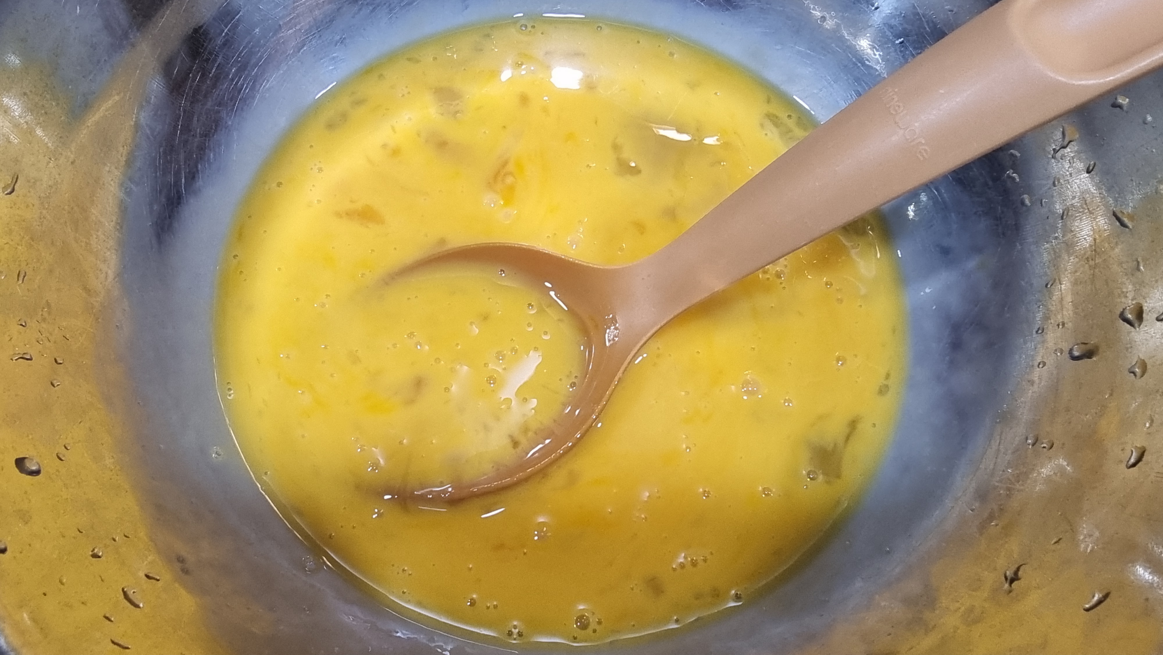 계란 다섯개는 그릇에 깨넣고 잘 섞어서 계란물을 만들어 뒀습니다.