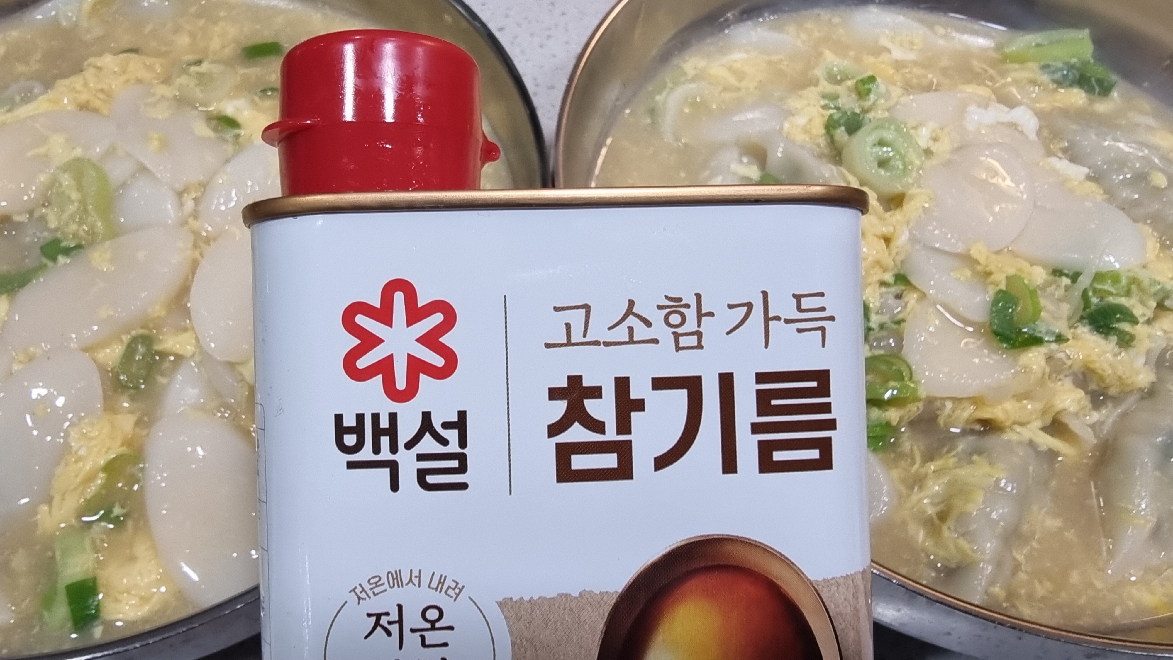 참기름 덕분에 더욱 고소한 떡만둣국이 됩니다.
