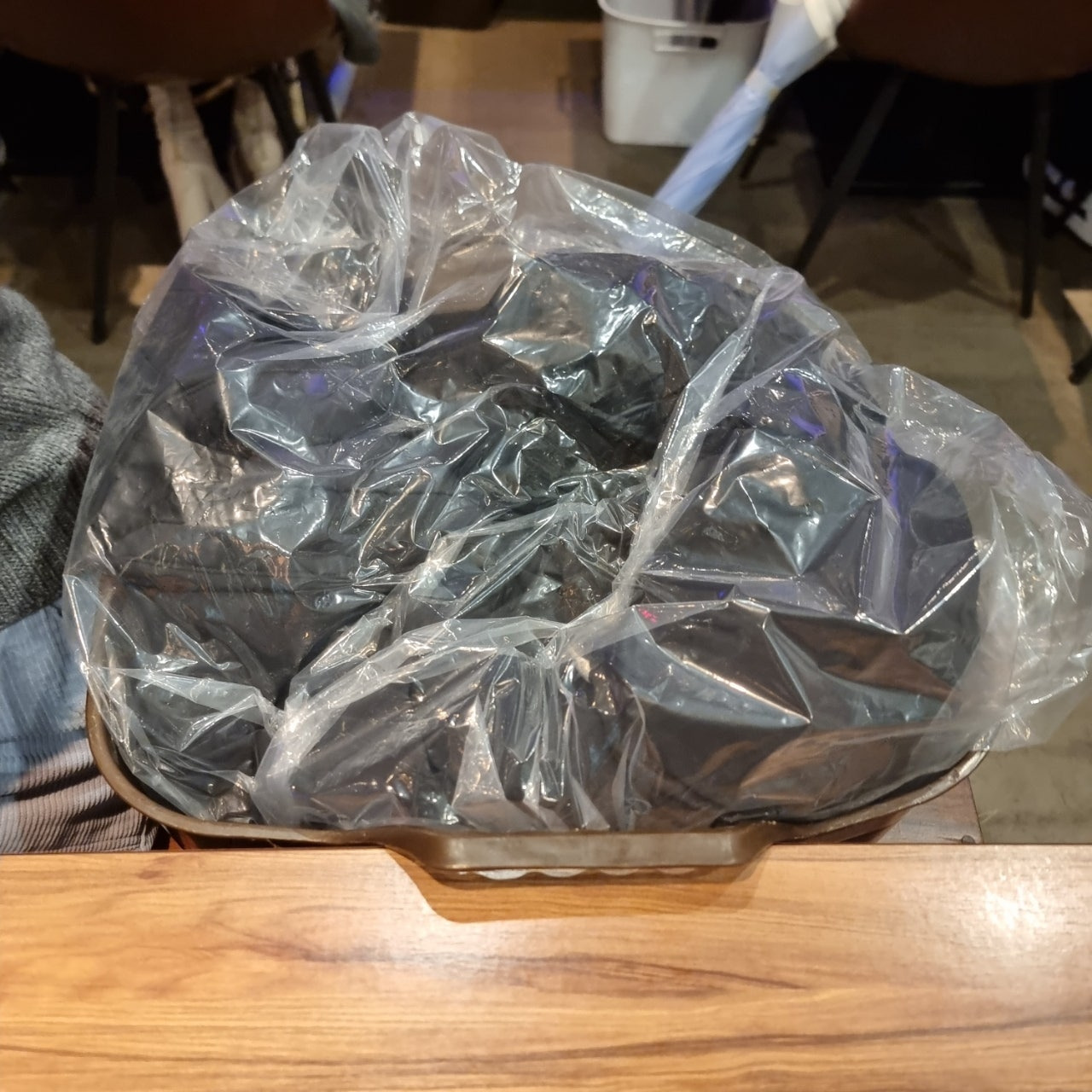 겉옷은 이렇게 비닐백에 싸서 바구니에 담아둘 수 있었습니다.