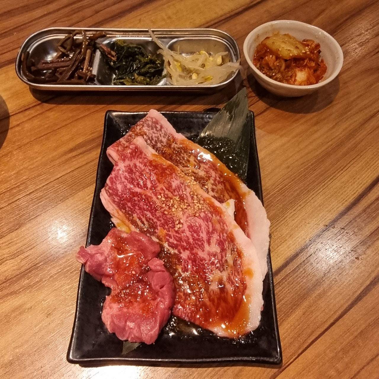야키니쿠집에 가면 불판에 1인당 한 점씩 굽곤 했는데 그런거 없이 한국식으로 마구 구워줬습니다.