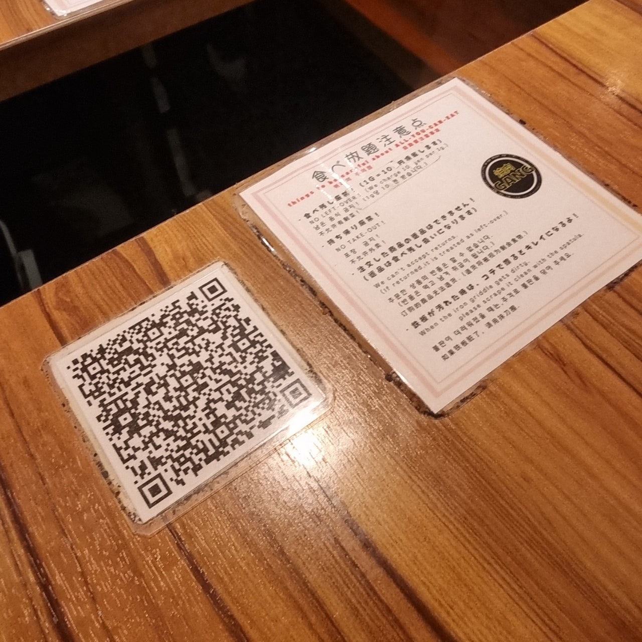 음식 주문은 QR코드를 촬영하면 스마트폰에서 가능합니다.