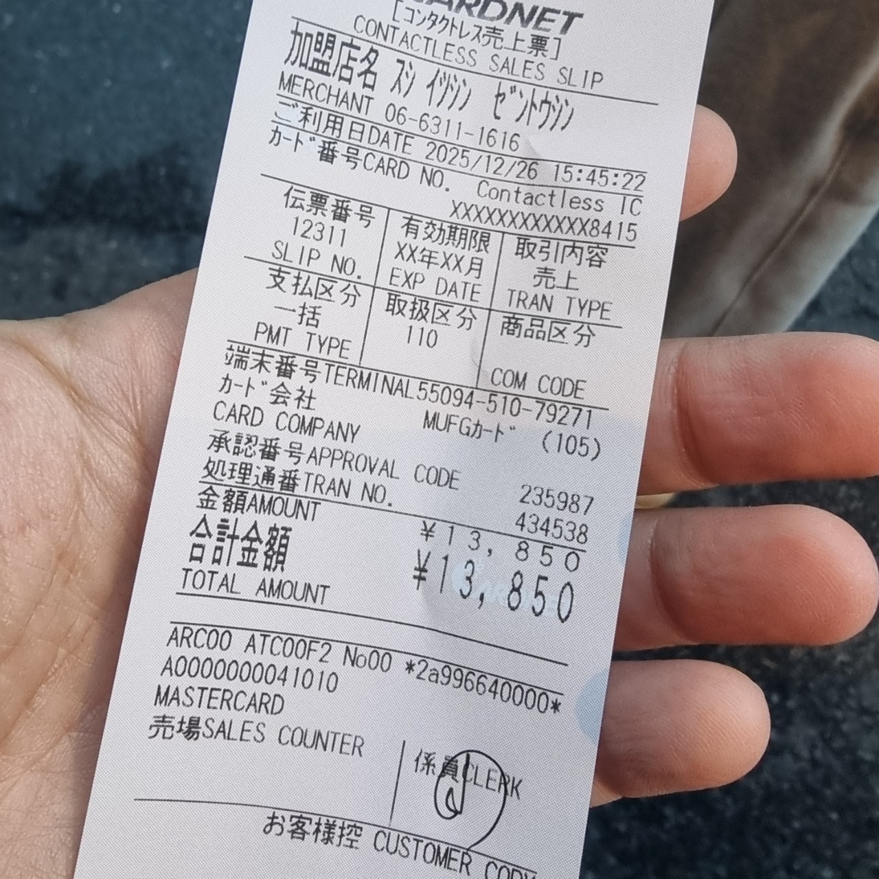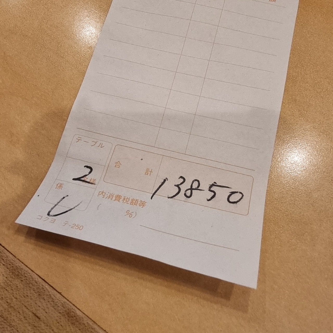 계산서 요청드리니 13,850엔 이라고..