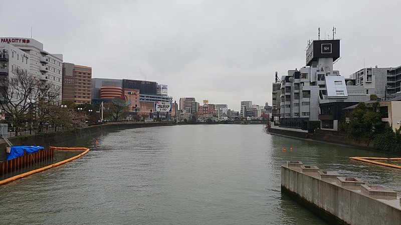 기대와 달리 벚꽃이 아직 개화하지 않은 3월의 일본 후쿠오카 나카스 강변 주변입니다.