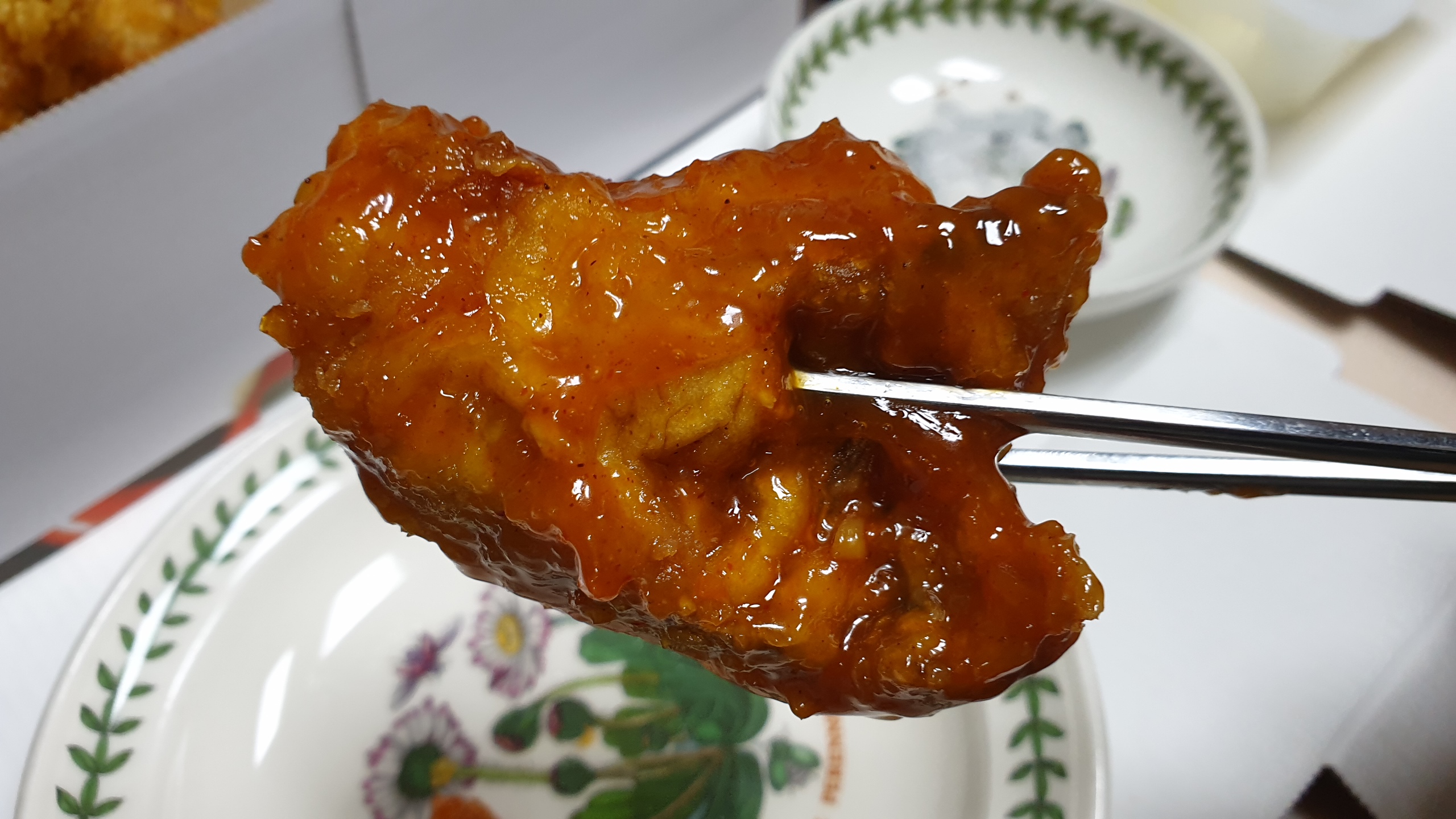이어서 양념만 잔뜩 뭍혀져 있는 양념치킨입니다.