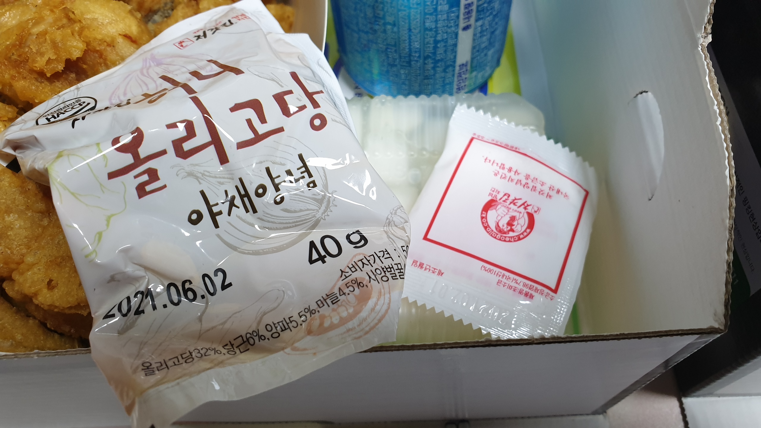 허니 올리고당 야채양념이 함께 오는데 이게 처갓댁양념통닭의 양념으로 알고 있습니다.