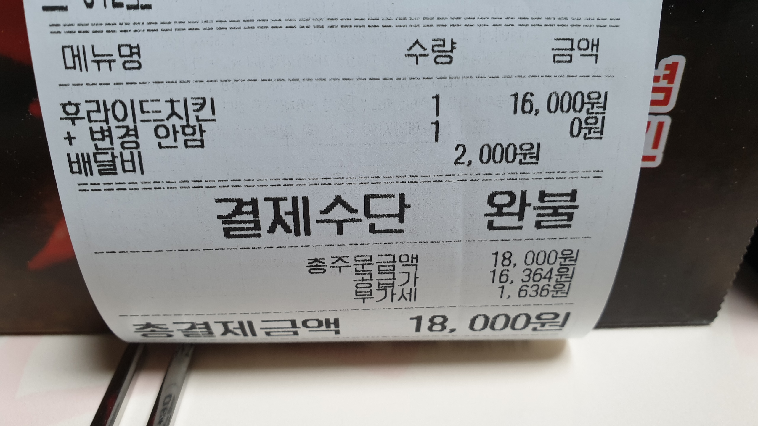 또 한번은 후라이드치킨으로 따로 결제 하였습니다.
